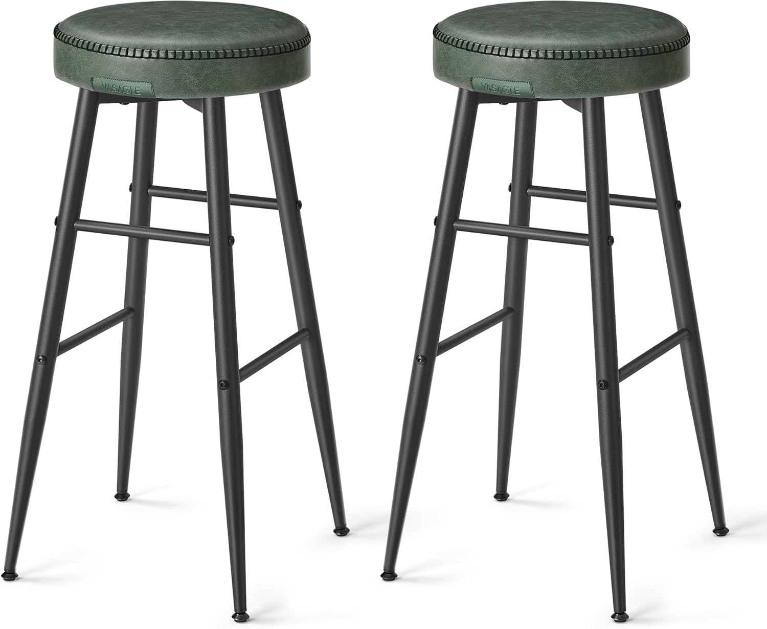 VASAGLE EKHO Collection - Bar Stools Set of 2, Bar Height Bar Stools, Kitchen Counter Stools, Mid-Century Modern Backless Counter Stools, 30-Inch Tall, Kitchen Island Home Bar, Forest Green