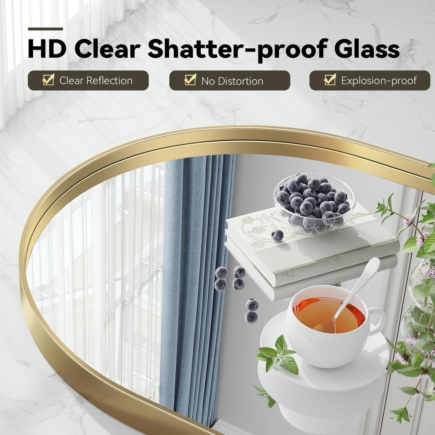 - HD Silver Arch: Mirror Our arched bathroom mirror are made of high-end silver mirrors, making our silver mirror 35% brighter than the traditional aluminum mirror, reflectivity increased to more than 90% without any visual distortion. Provides a crystal-clear, distortion-free reflection, ensuring the image does not seem distorted at all angles and distances