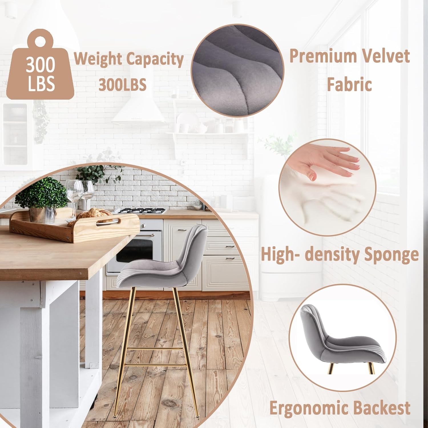 - 【 Easy Assembly and Instant Style Upgrade】 These grey velvet bar stools with back come with all the necessary tools and step-by-step instructions, making assembly a breeze. In just 15-20 minutes, you can transform your kitchen island with seating into a stylish and functional space. Plus, the ergonomic backrest provides extra support, making these stools as practical as they are beautiful.