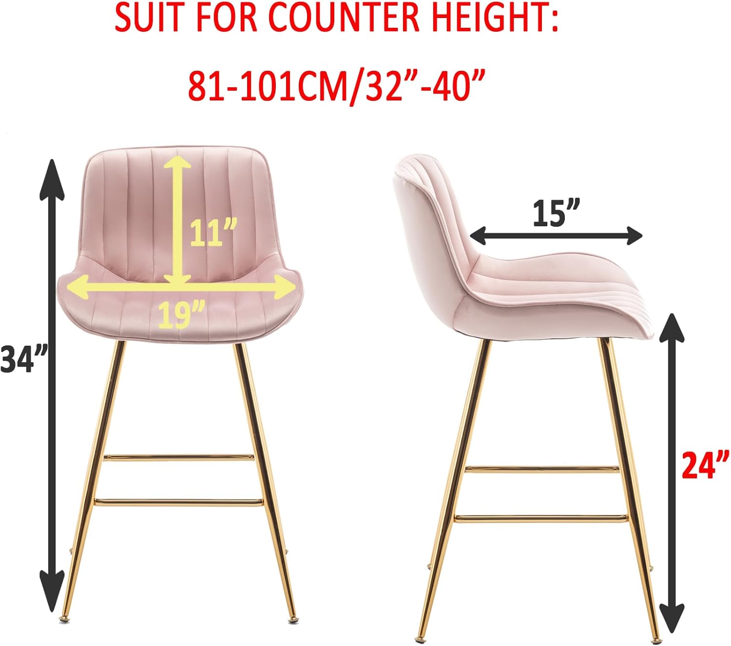 - 【Measure Height Before Order】Our 24 inch pink barstools set of 2 are suitable for counter heights of 32“-38”. To ensure a perfect fit, please measure your counter height before purchasing
