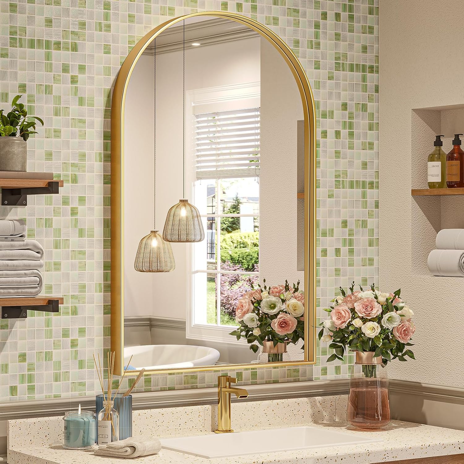 - HD Silver Arch: Mirror Our arched bathroom mirror are made of high-end silver mirrors, making our silver mirror 35% brighter than the traditional aluminum mirror, reflectivity increased to more than 90% without any visual distortion. Provides a crystal-clear, distortion-free reflection, ensuring the image does not seem distorted at all angles and distances