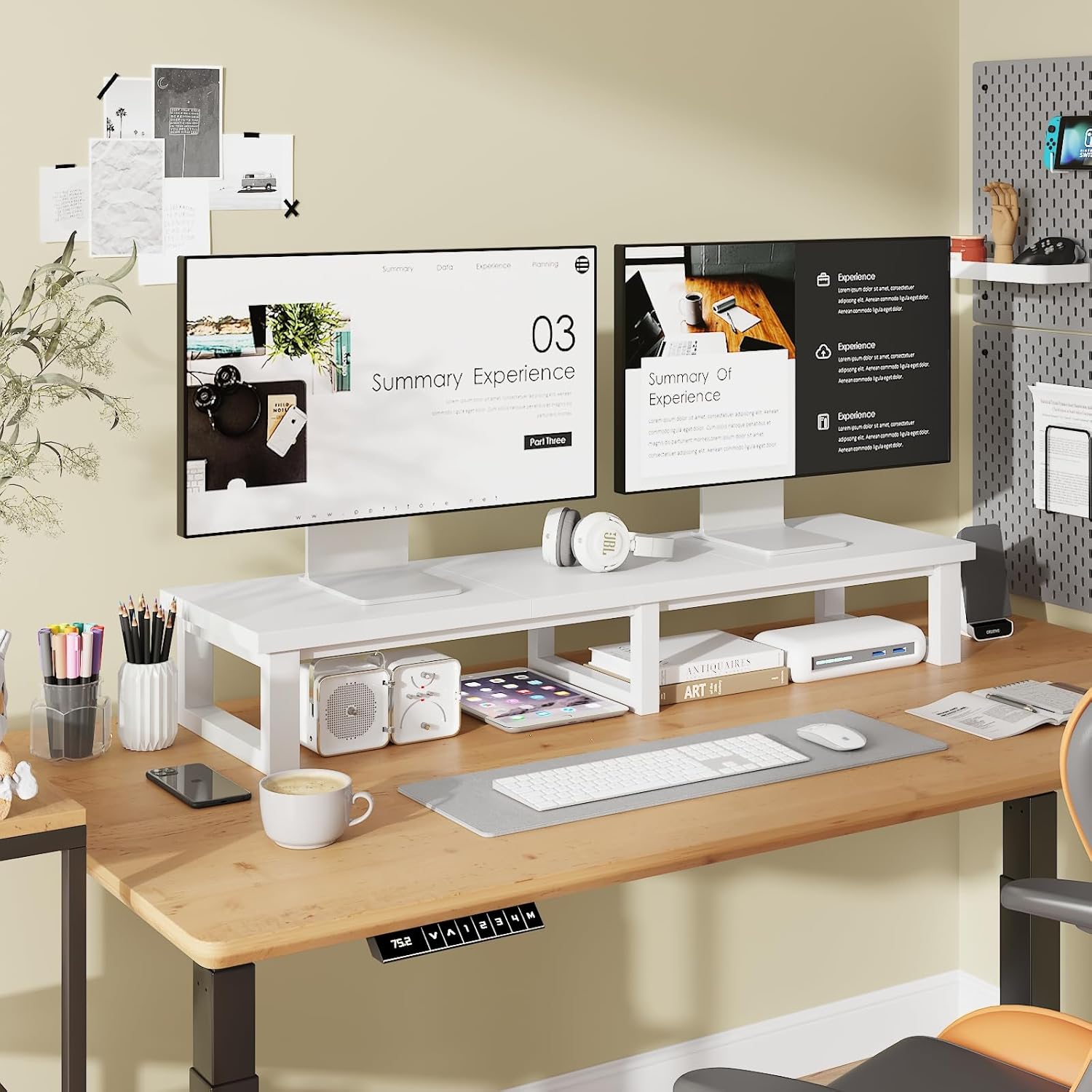 - 【Large TV Riser Stand】Dimensions:45"L×11.8"W×7.1"H. Large TV riser stand can allow your flat or curved TV/Monitor (up to 60"), monitor stands for 2 monitors(up to 32"). Ideal for your living room,bedroom,office.