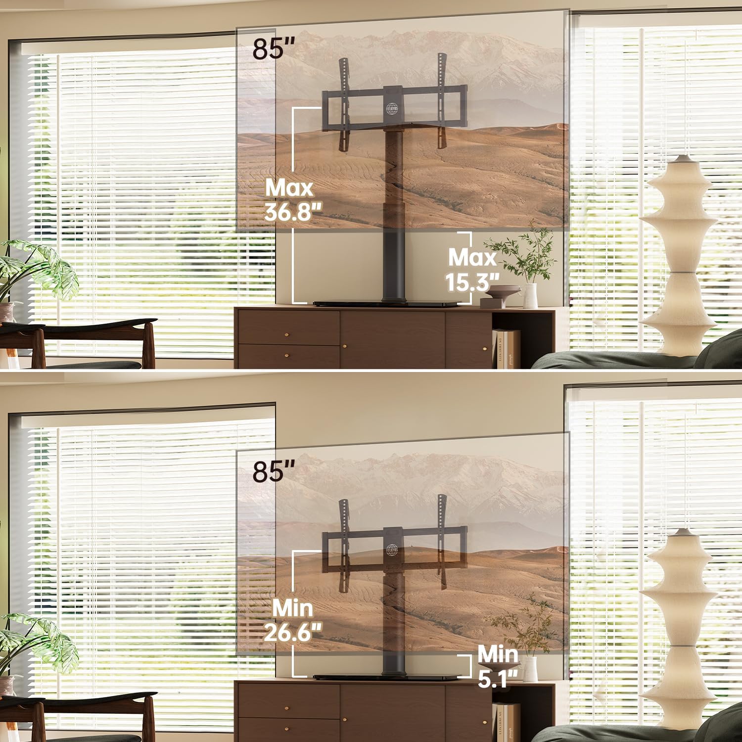- 【±30°Fluid Swivel for Free Control】Dominate your viewing angles with a 30° left/right swivel—This swivel TV stand mount is for gaming marathons, glare-free workouts, or hosting movie nights. The TV stand for bedroom's FITUEYES self-developed structure ensures the smooth rotation to match your dynamic lifestyle.