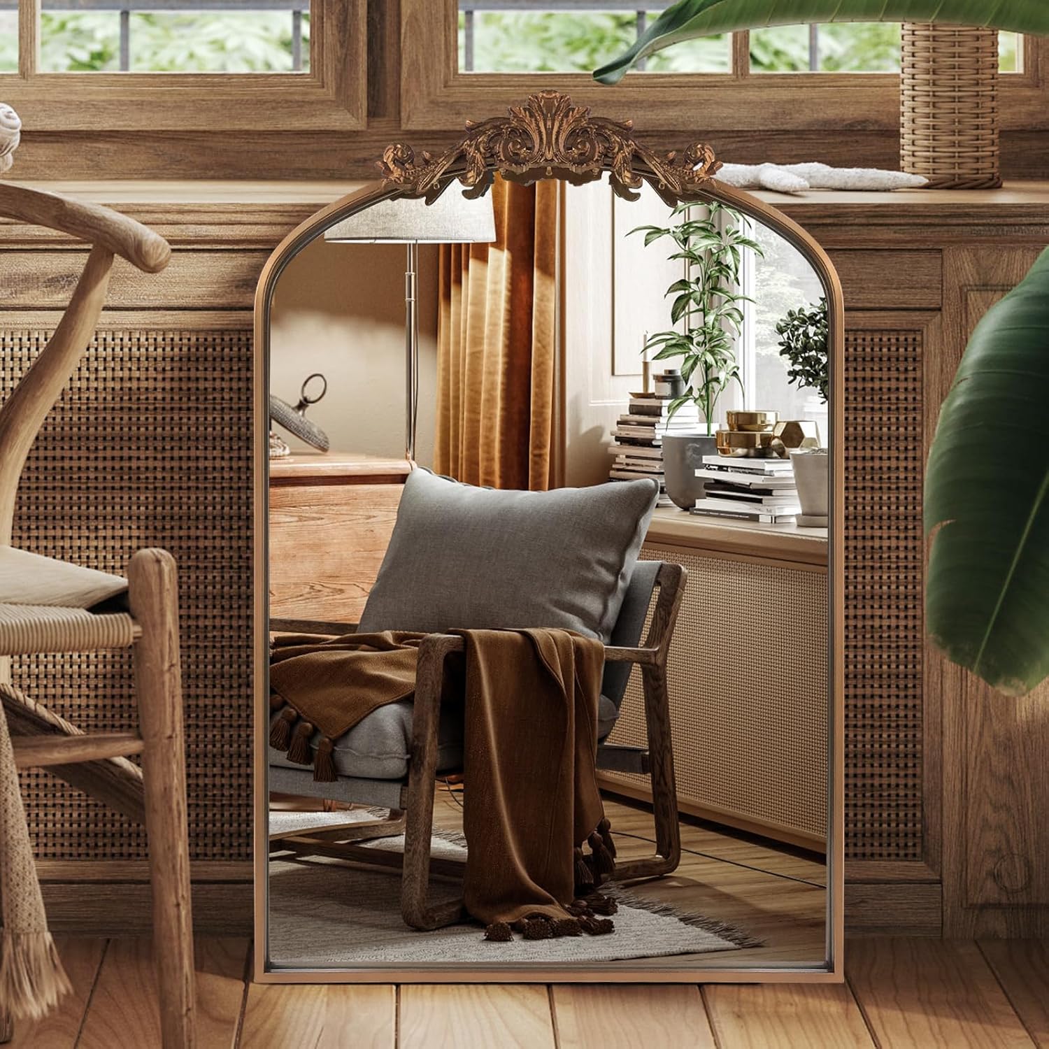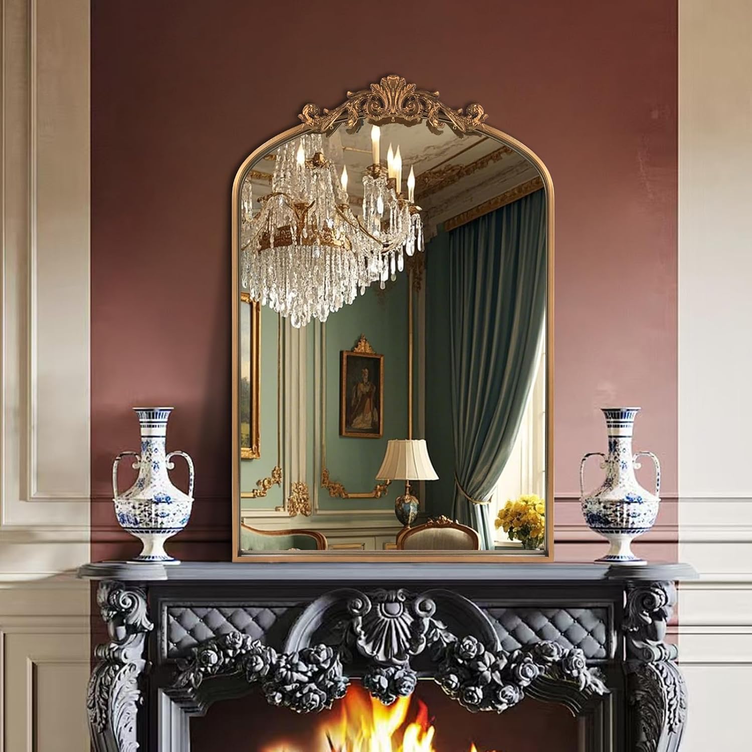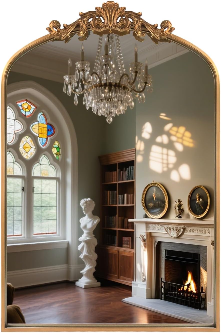 - Baroque Ornate Gold Frame: Adorned with intricate vintage carvings, this arched mirror exudes traditional glamour. The lavish gold finish enhances baroque elegance, transforming it into a timeless art piece for sophisticated interiors.