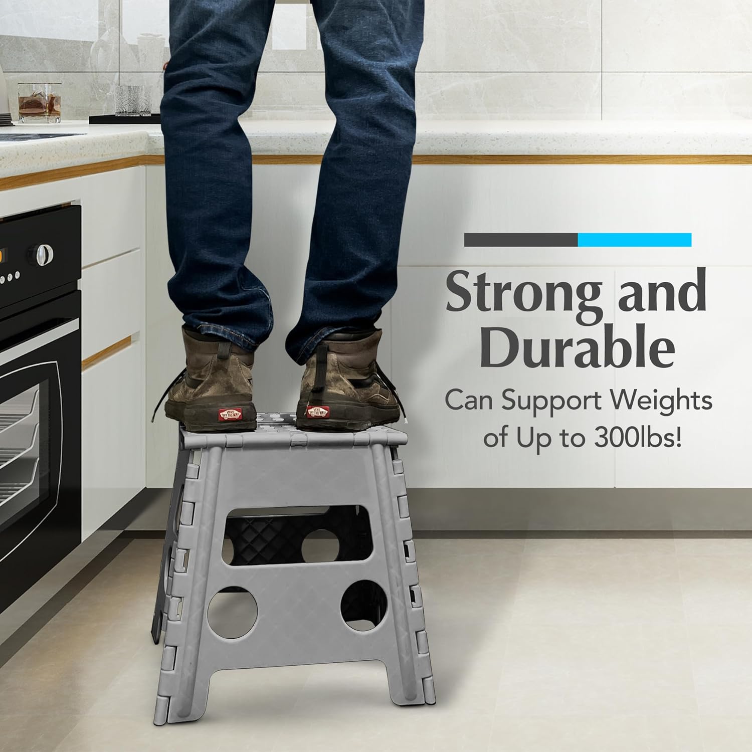 - SPACE-SAVING DESIGN: Easy to fold and slim enough to fit in tight spaces, the folding stool is perfect for small apartments or cluttered homes. Store it in a drawer, between appliances, or even under the bed