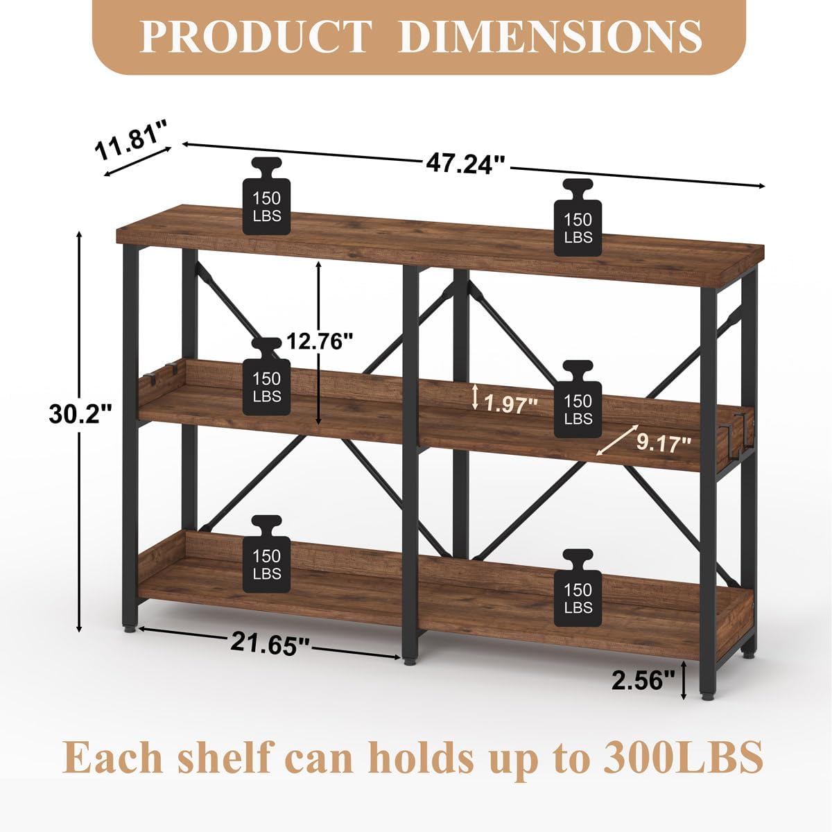 BON AUGURE Rustic Console Table with Shelves, 3 Tier Sofa Table Behind Couch for Living Room, Wood Metal Entryway Tables for Hallway, Foyer, Entrance (47 Inch, Rustic Oak)