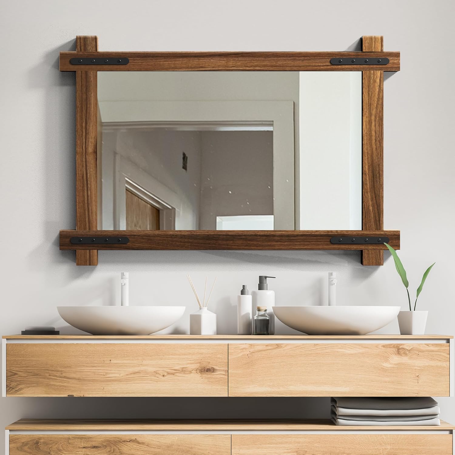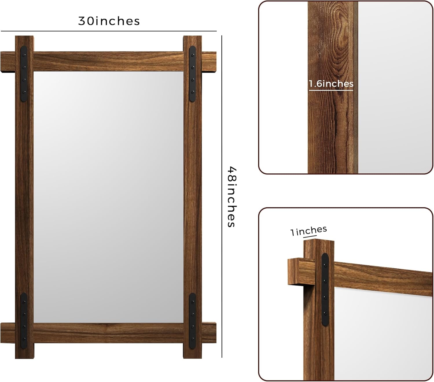 - Premium Solid Wood Frame: Crafted from 100% solid wood, each frame is carefully selected to showcase clear and complete wood grain patterns, free from blemishes or knots. The result is a mirror that exudes quality and showcases the natural beauty of the wood.