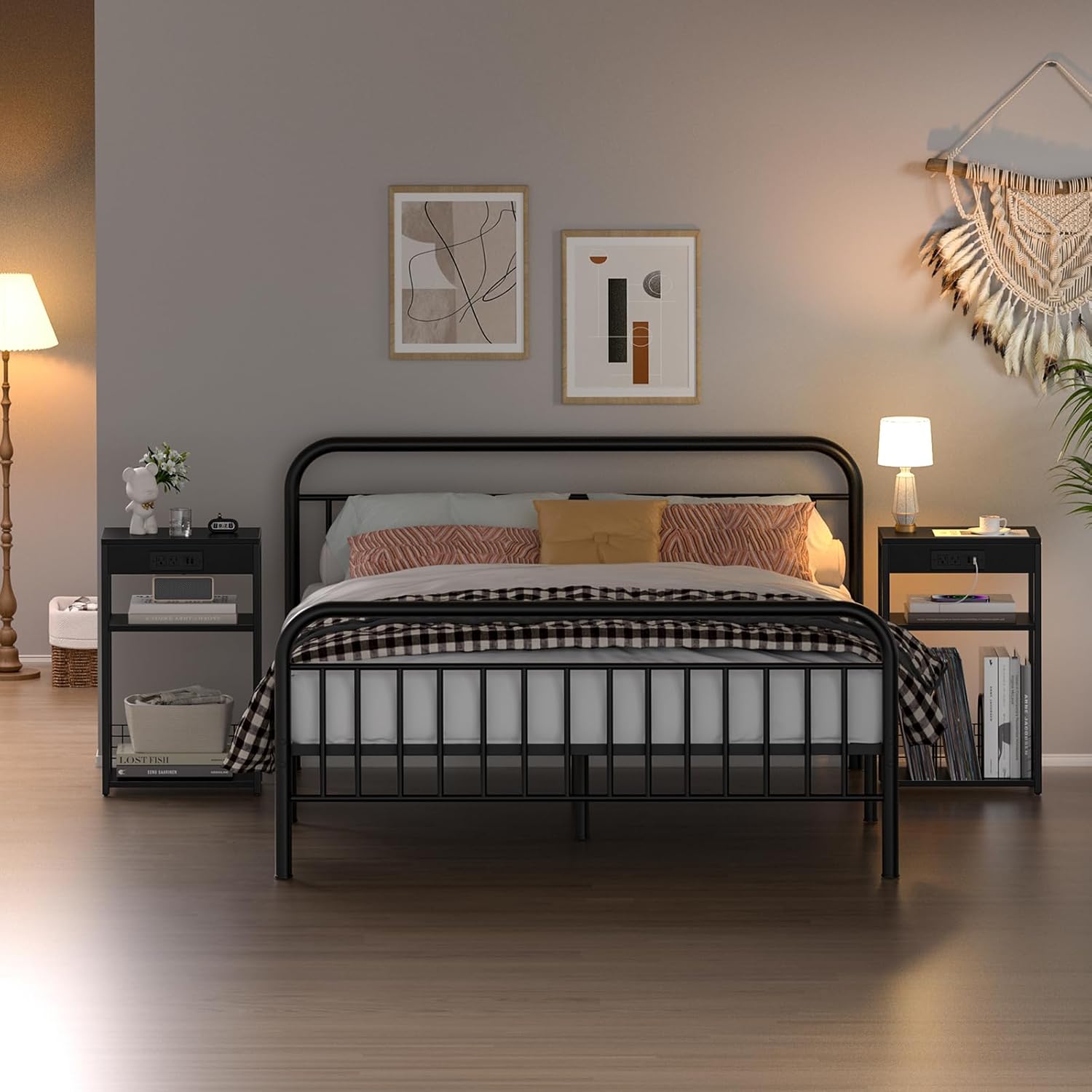 - [Nightstand with Charging Station] This small bedside table has 2 USB port and 2 charger stations, which can help you easily connect electronic devices such as record players, speakers, phones and so on, and helping you enjoy the fun of music more conveniently. The charging device located in front of the table, which can helps your nearly dead electronic devices connect to a power source quickly.