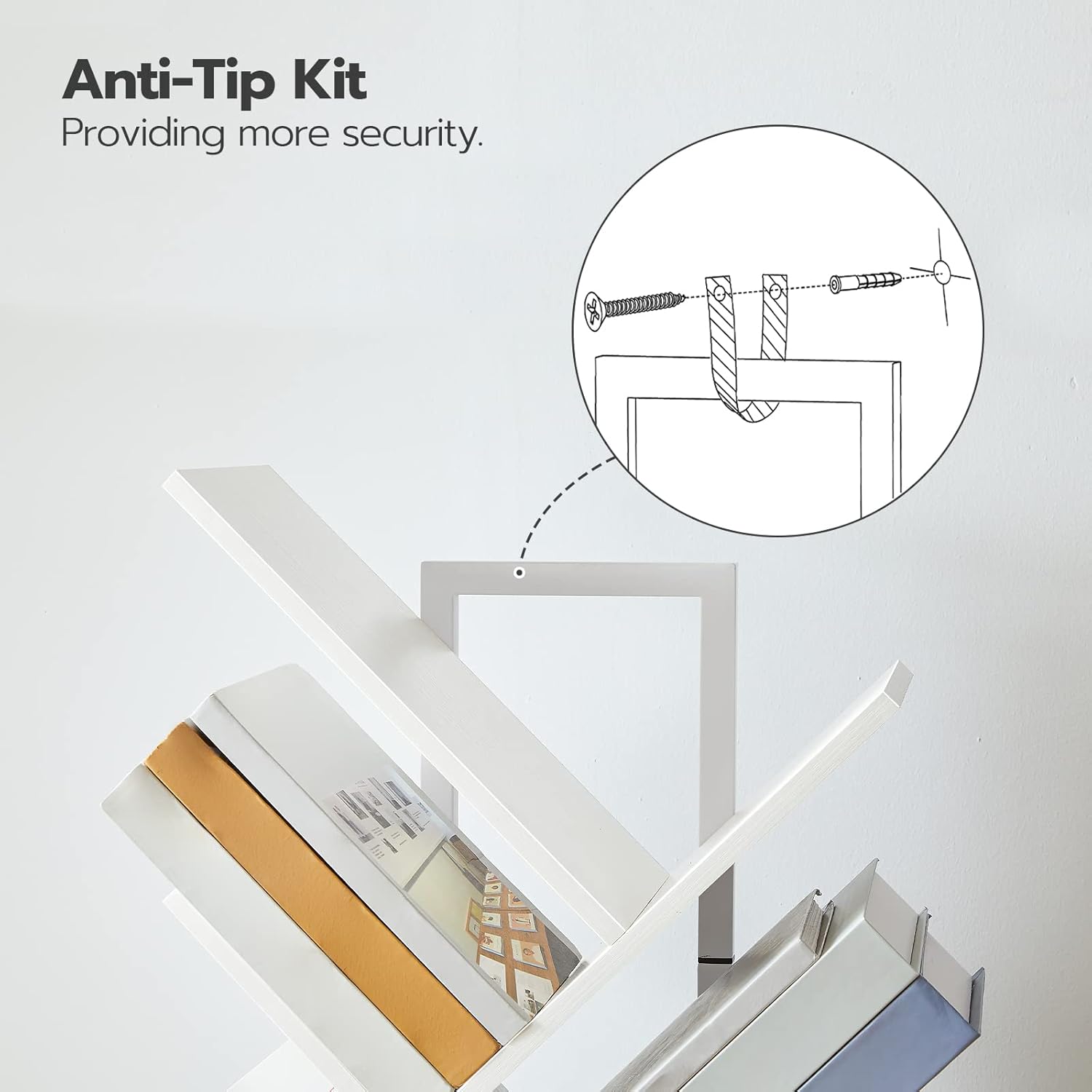 - Stable Structure: The tree bookshelf is made from high-quality particle board and metal frame, which is stable and durable. Equipped with the anti-toppling device, no matter where the book tree bookshelf sits, it can stand safely without worrying about tipping over