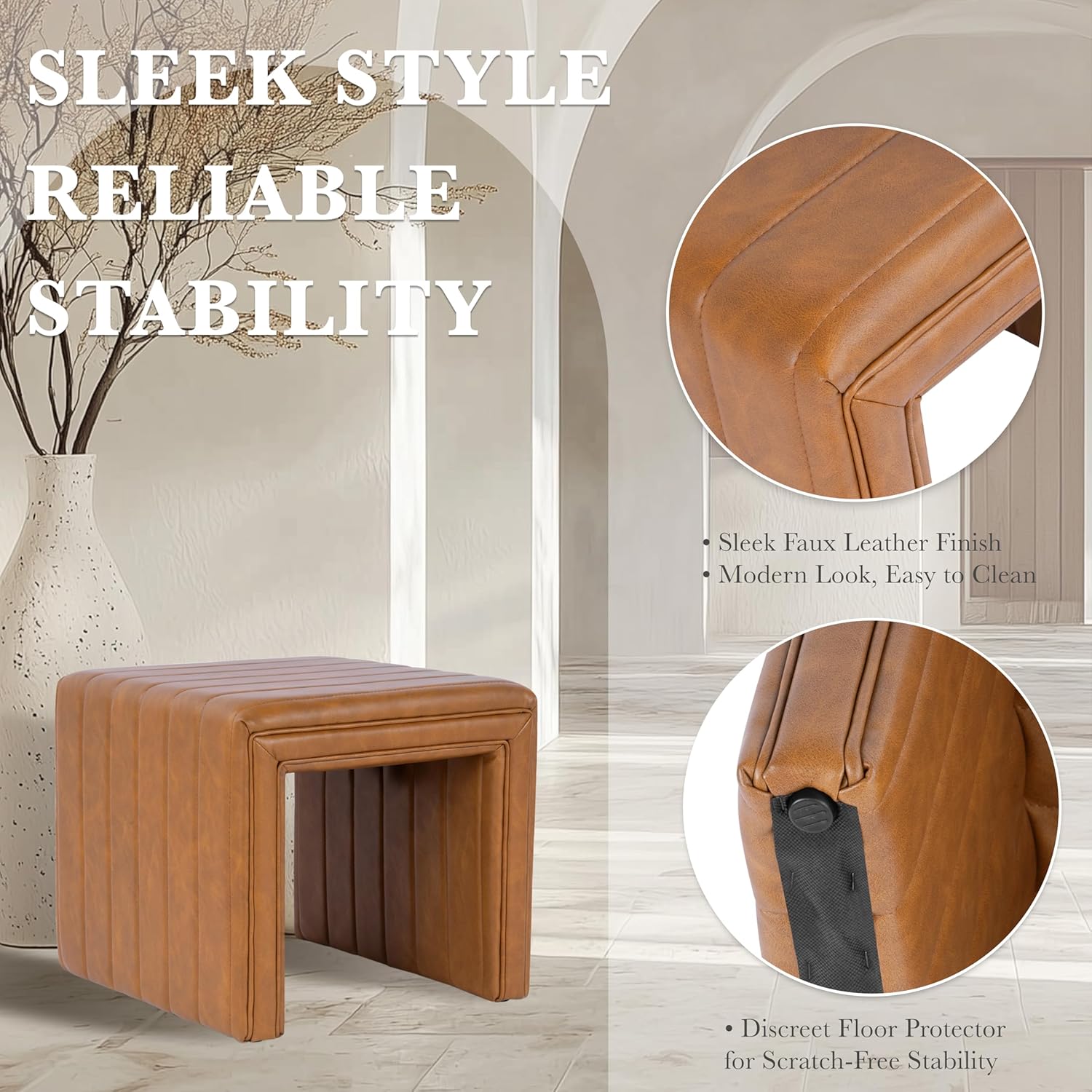 - FAUX LEATHER OTTOMAN CARE & CLEANING: With easy maintenance in mind, this footstool is spot clean only. Simply treat any spills or stains promptly to ensure its pristine appearance and longevity