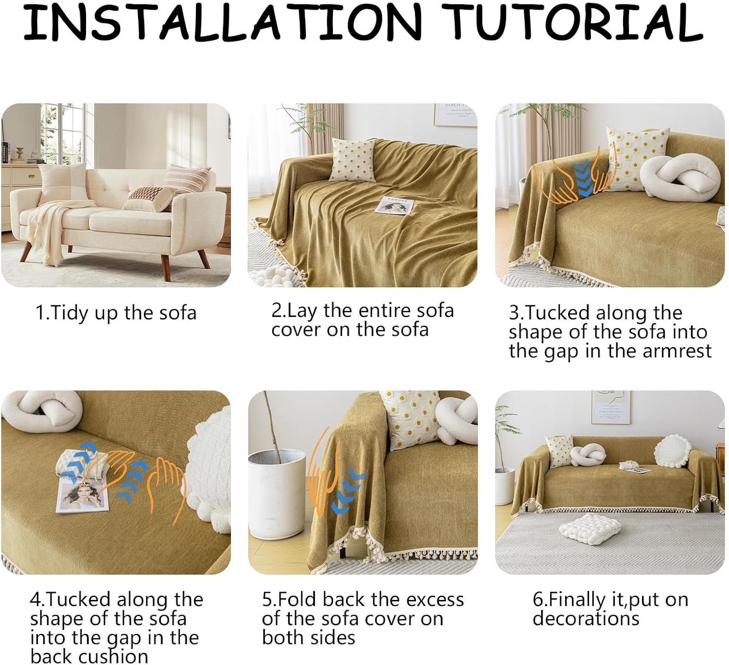 HANDONTIME Couch Covers for Pets Boho Mustard Yellow Love Seat Couch Covers Brown Sofa Cover for Dogs Pet Couch Protector Chenille Tassel Sofa Slipcovers Sofa Throw Cover Boho Decor for Living Room