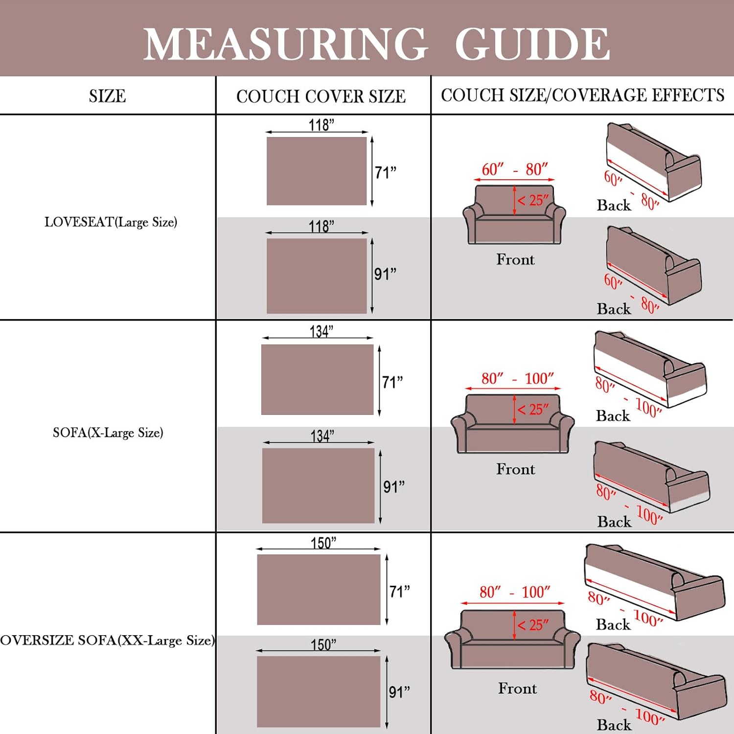 - ๐๐ข๐ณ๐: Please Measure Before Purchasing, We recommend Large Size 71"x 118 " / 91"x 118 "for loveseat; X-Large Size 71" x 134" / 91"x 134"for sofas; XX-Large Size 71" x 150" / 91"x 150"for oversize sofas; ๐ฌ๐ผ๐ ๐ฐ๐ฎ๐ป ๐ฐ๐ต๐ผ๐ผ๐๐ฒ ๐ณ๐ญ "๐ผ๐ฟ ๐ต๐ญ" ๐ฎ๐ฐ๐ฐ๐ผ๐ฟ๐ฑ๐ถ๐ป๐ด ๐๐ผ ๐๐ผ๐๐ฟ ๐ป๐ฒ๐ฒ๐ฑ๐ ๐๐ผ ๐ฎ๐ฐ๐ต๐ถ๐ฒ๐๐ฒ ๐ฑ๐ถ๐ณ๐ณ๐ฒ๐ฟ๐ฒ๐ป๐ ๐ฐ๐ผ๐๐ฒ๐ฟ๐ฎ๐ด๐ฒ ๐ฒ๐ณ๐ณ๐ฒ๐ฐ๐๐! Suitable for most couch, even some odd-shaped furniture. Provide perfect coverage for the sofa (including armrests).