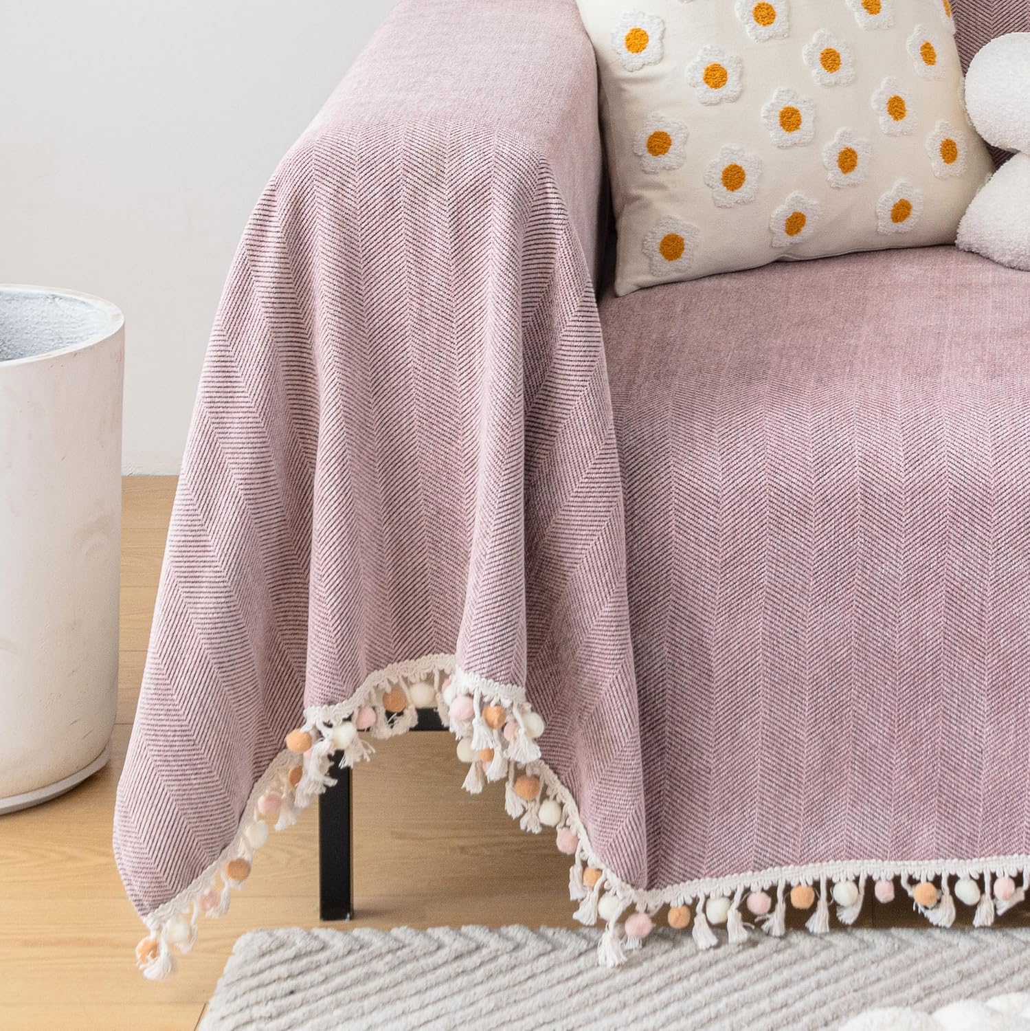 HANDONTIME Soild Couch Covers for Dogs Pink-Purple Sofa Covers Boho Cover for Sofa 3 Seats Chenille Sofa Throw Cover Mauve Sofa Covers for 3 Cushion Couch Tassel, Washable, Pet Friendly, 71" X118"