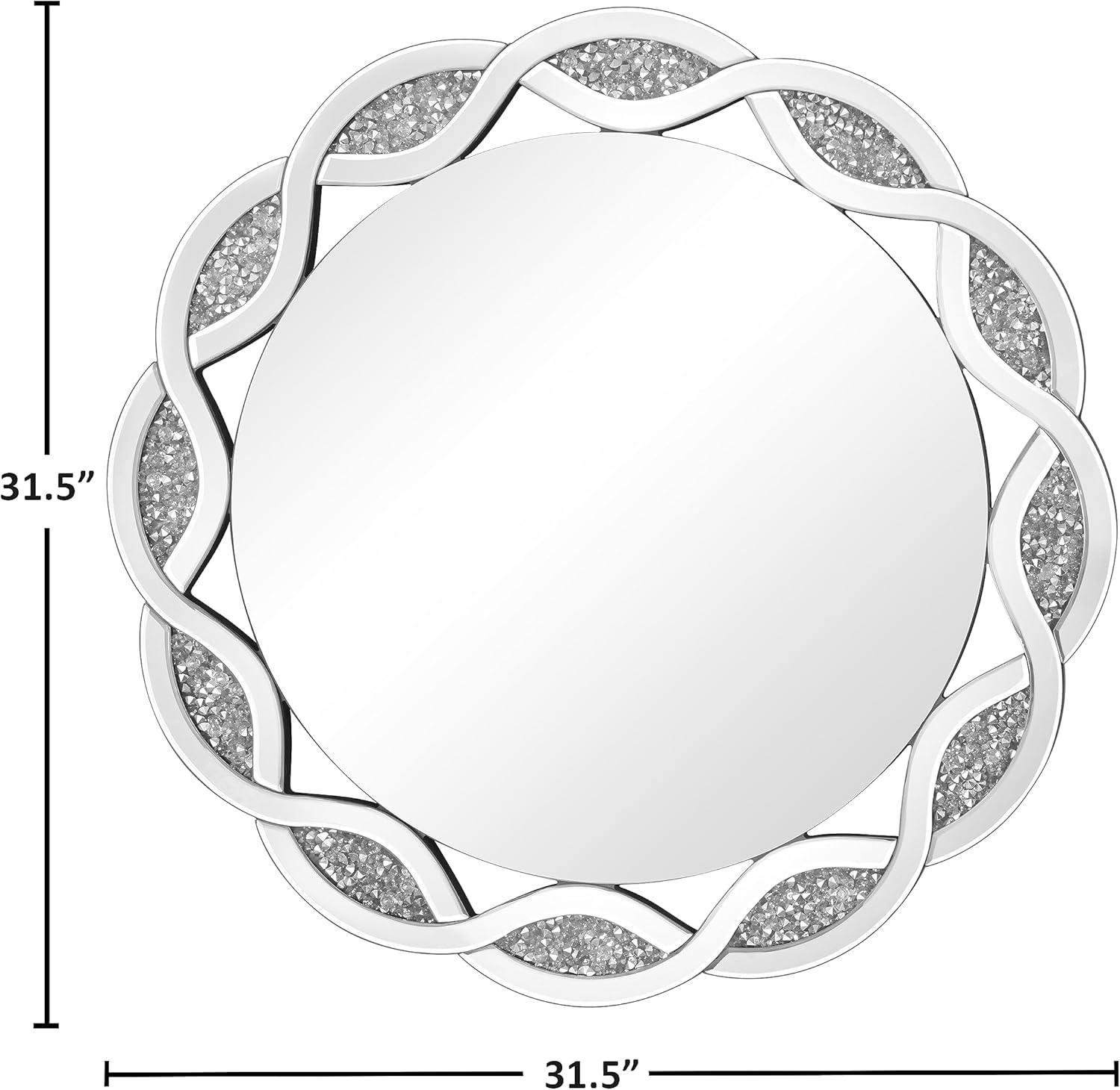 Crystal Decorative Mirror-32 x32 Gorgeous Silver Mirror Crush Diamond Mirror for Wall Decoration Bedroom Bathroom Dining Room and Living Room