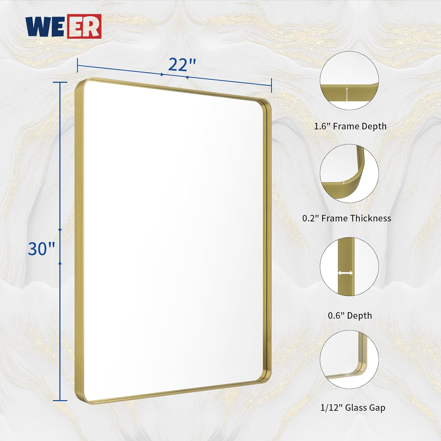 WEER Gold Bathroom Mirror, 22X30 Inch Brushed Gold Metal Frame Mirror, Rounded Rectangle Gold Bathroom Vanity Mirror for Wall, Tempered Glass, Anti-Rust, Hangs Horizontally or Vertically