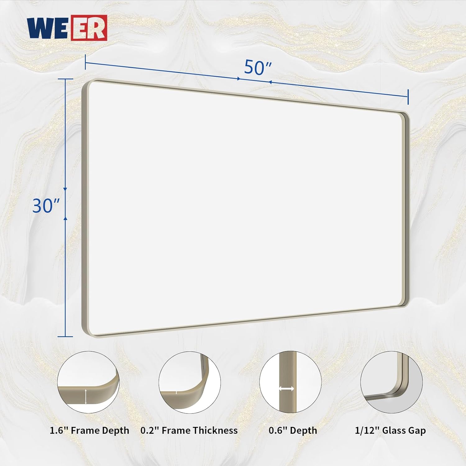 - 【Shatterproof Tempered Glass】: All WEER matt silver mirror for bathroom is built with 4MM tempered glass which is shatter-proof, burst-proof and more safer to use. The shatterproof film is the important layer that will not splash into pieces when it's broken;