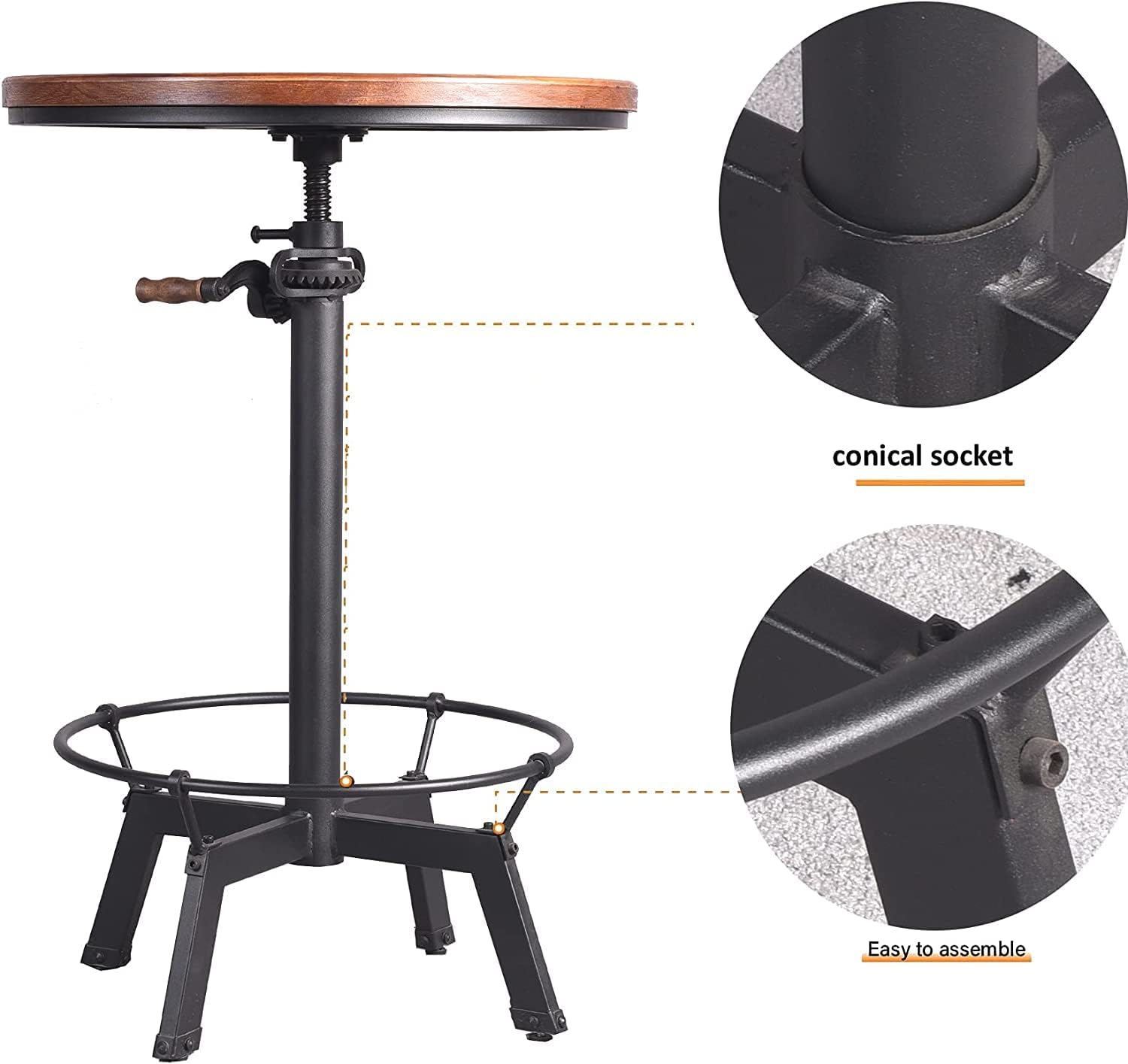 Diwhy Pub Set Industrial Style Adjustable Height 33.5-39.4in Dining Table Dia 23.6" Wooden Top with Handle Bar Table