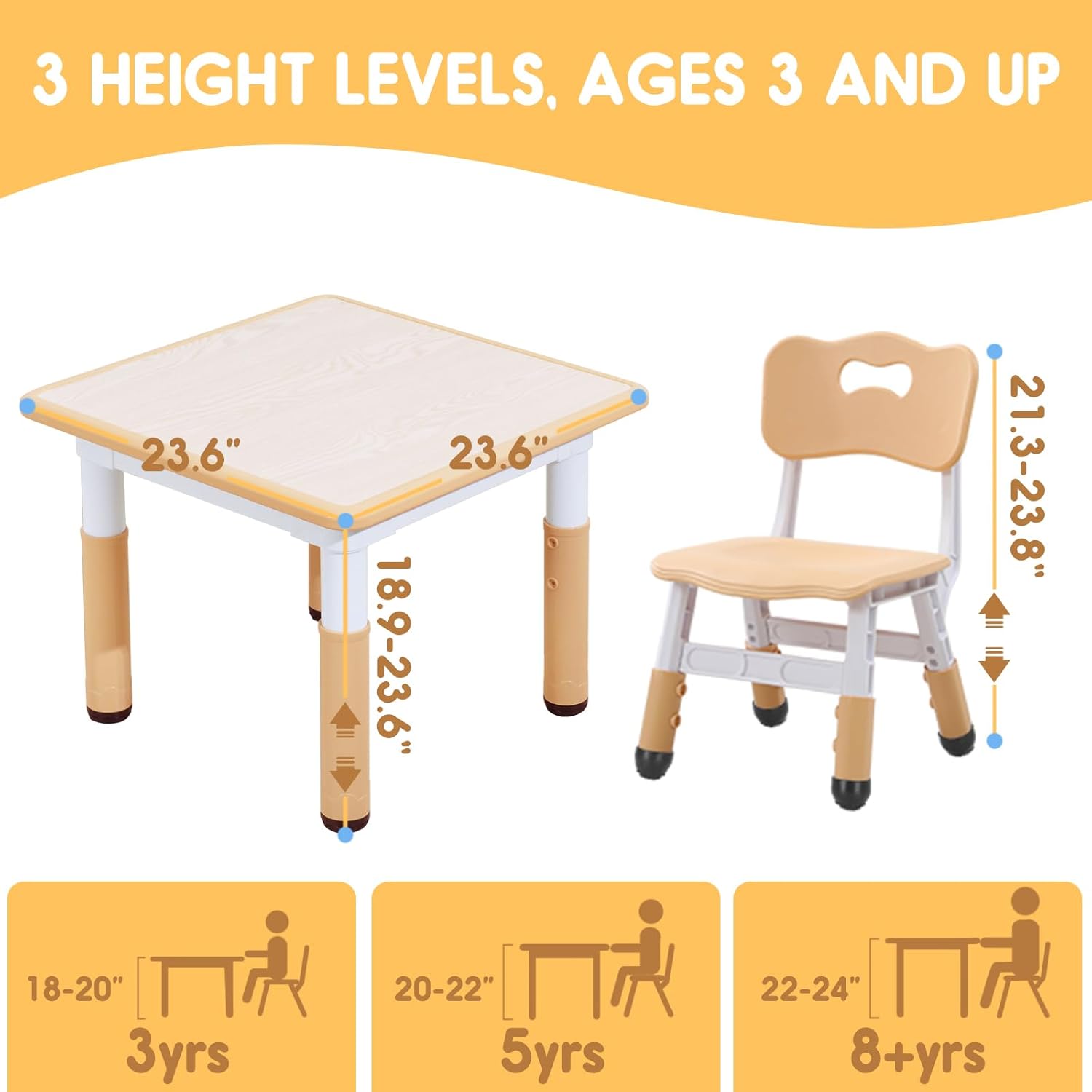 - šŗš°šš¬/š“šØš»š¬š¹š°šØš³-šŗšØšš¬ šØšµš« š¬šŖš¶-šš¹š°š¬šµš«š³š š“šØš»š¬š¹š°šØš³šŗ: This kids' table and chair set is crafted with upgraded HDEP plastic, which is more durable and heat-resistant than traditional materials. It is built to last longer and holds multiple certifications from renowned U.S. institutions, ensuring safety and reliability. Additionally, the tabletop is made from FSC-certified wood, contributing to environmental sustainability while providing a safe and sturdy surface for your child.