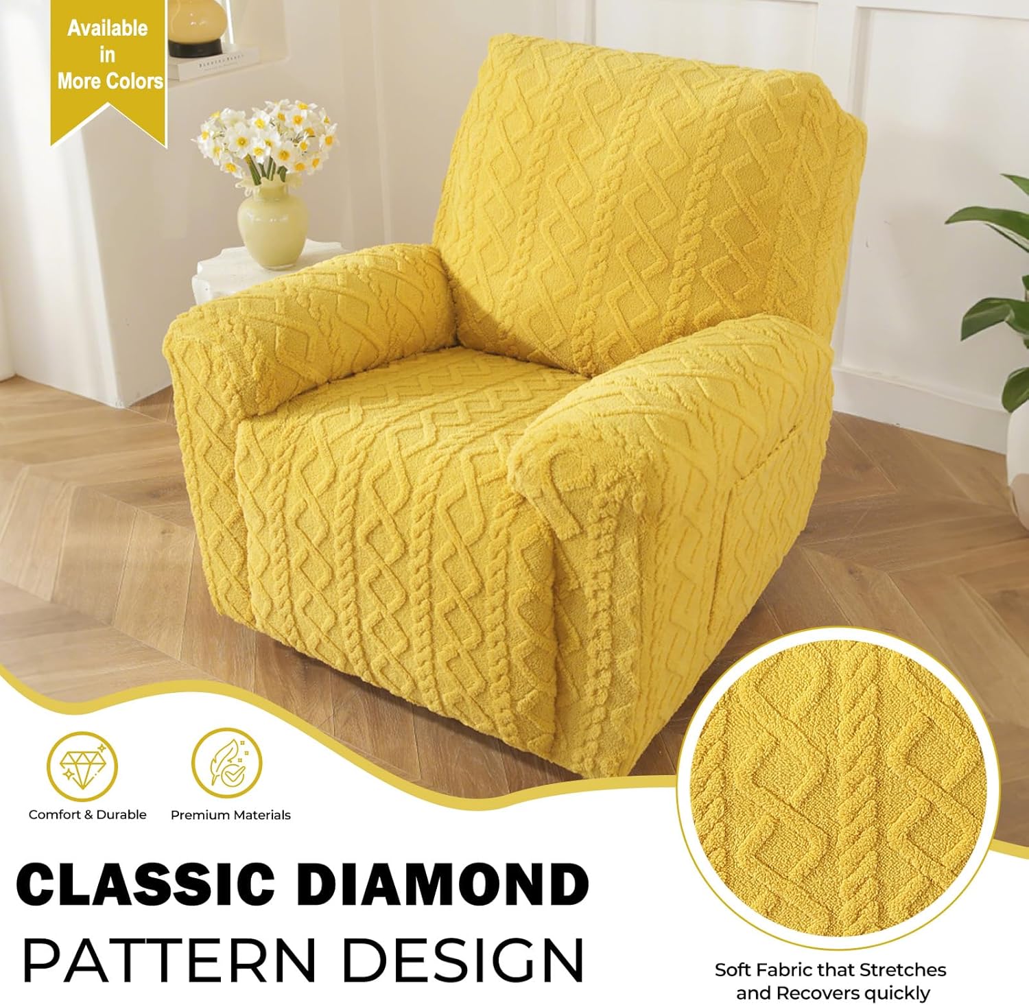 vctops 4 Pieces Geometric Jacquard Plush Recliner Slipcovers Soft Fuzzy Fluffy Sofa Couch Cover Anti-Slip Furniture Protector with Elastic Bottom for Kids Cats Dogs(Yellow,1 Seat)