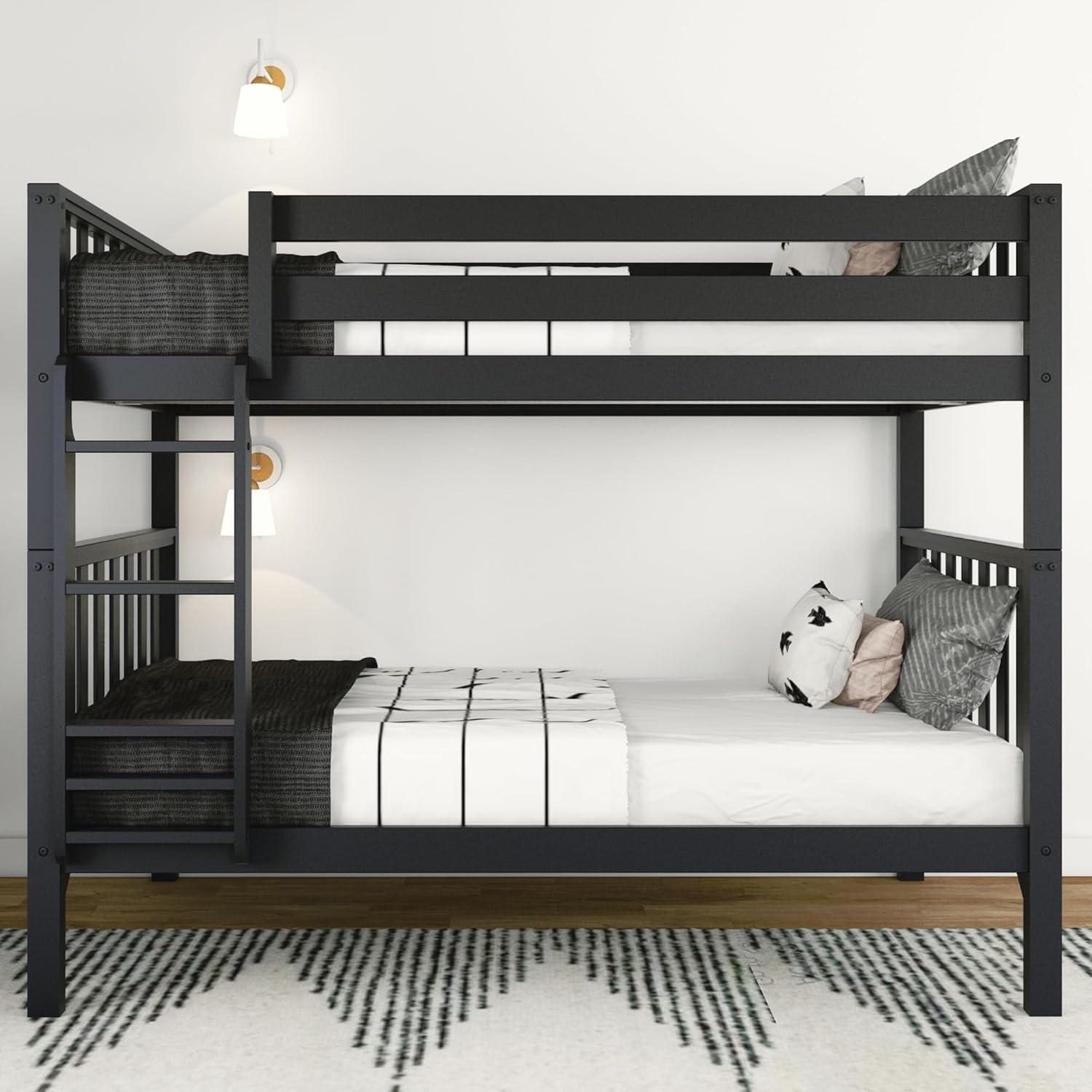 Max & Lily Bunk Bed, Scandinavian Modern Bunk Bed, Solid Wood Twin-Over-Twin Bed Frame for Kids, No Box Spring Needed, Black