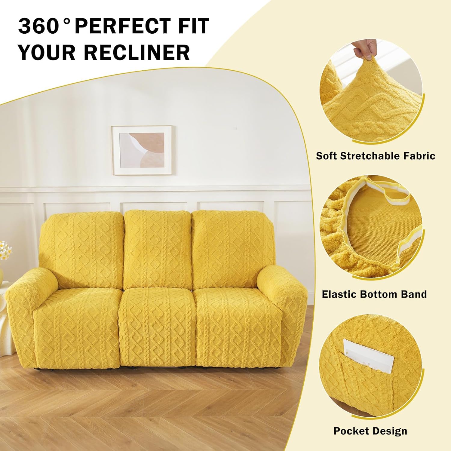 vctops 8 Pieces Geometric Jacquard Plush Recliner Sofa Covers Soft Fuzzy Fluffy 3 Seats Couch Cover Anti-Slip Sofa Slipcover Furniture Protector with Elastic Bottom for Kids Pet(Yellow,3 Seat)