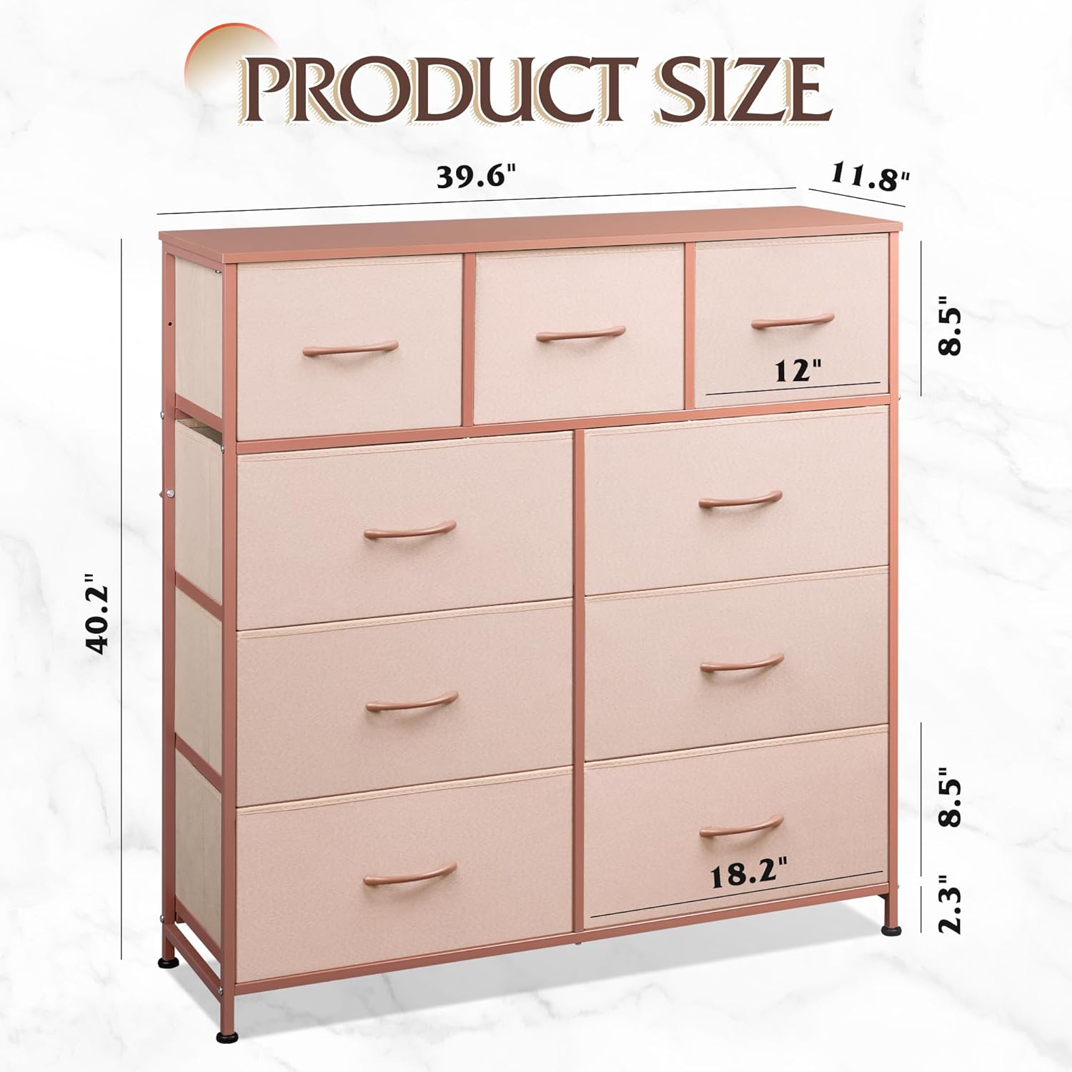 WLIVE 9-Drawer Dresser, Fabric Storage Tower for Bedroom, Hallway, Entryway, Closet, Tall Chest Organizer Unit with Fabric Bins, Steel Frame, Wood Top, Easy Pull Handle, Pink