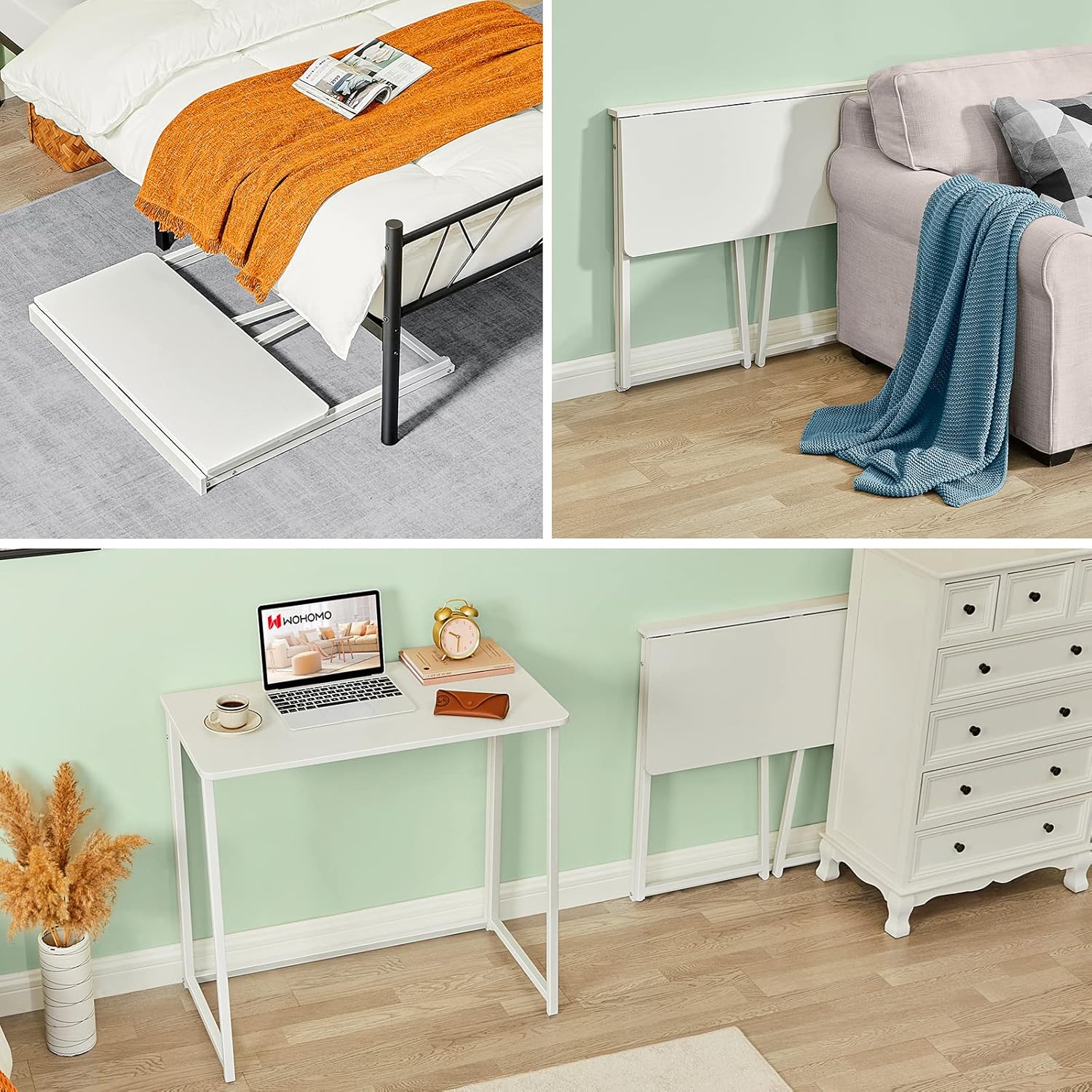 WOHOMO Folding Desk, Small Writing Desk 39.4", Space-Saving Foldable Laptop Table Writing Workstation for Home Office, Easy Assembly, White