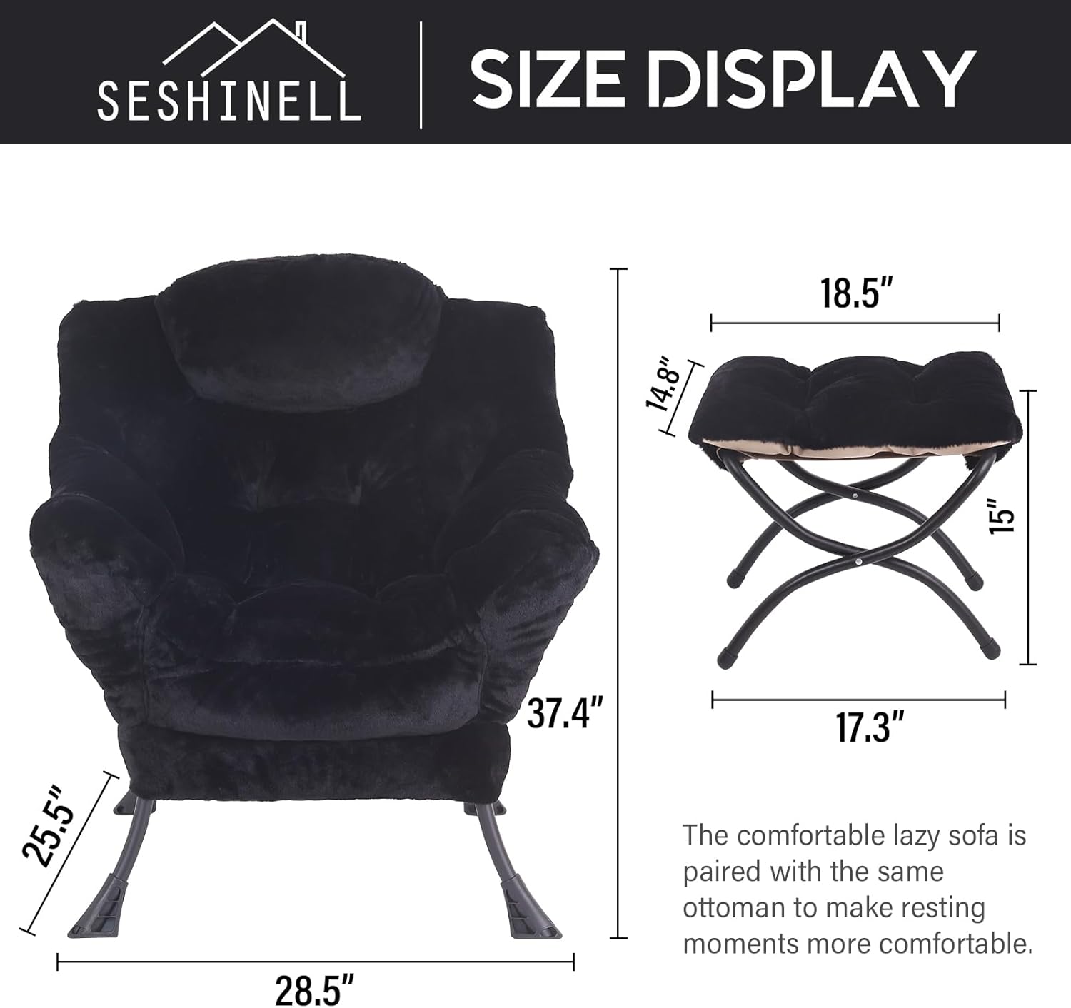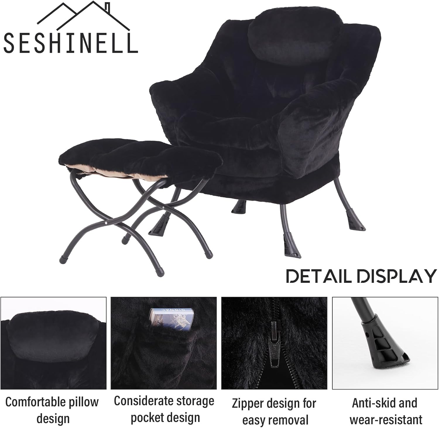 - LAZY CHAIR WITH OTTOMAN: The comfy lazy chair comes with a versatile folding footstool. You can also put the footstool next to the sofa and coffee table in the living room as a footstool to relax your feet, or even put it in the hallway or doorway and sit on a small stool to change your shoes.