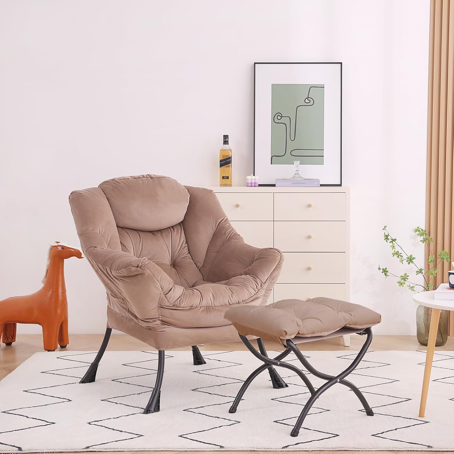 - LAZY CHAIR WITH OTTOMAN: The comfy lazy chair comes with a versatile folding footstool. You can also put the footstool next to the sofa and coffee table in the living room as a footstool to relax your feet, or even put it in the hallway or doorway and sit on a small stool to change your shoes.