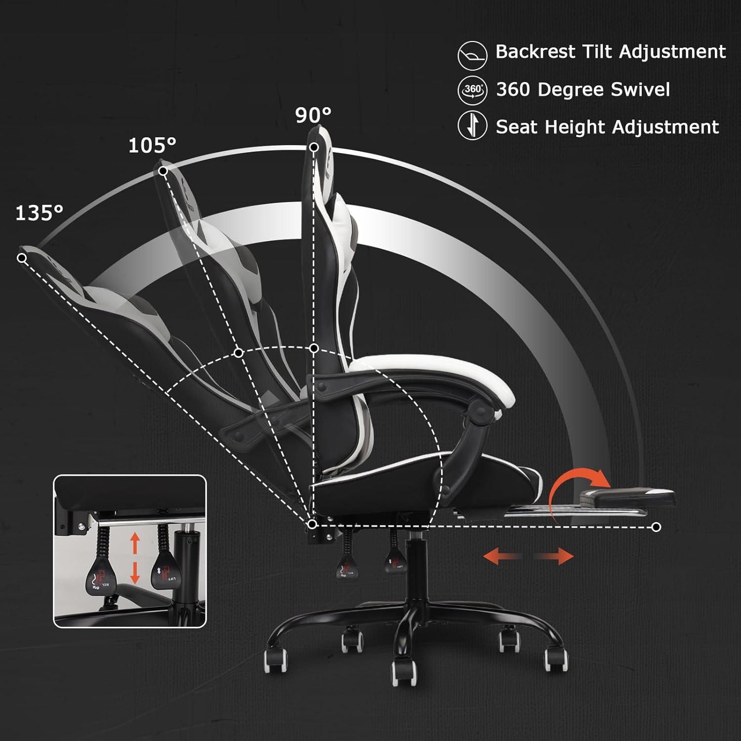 Gaming Chair with Linkage Armrest & Footrest, High Back Video Gaming Chair, Black/White