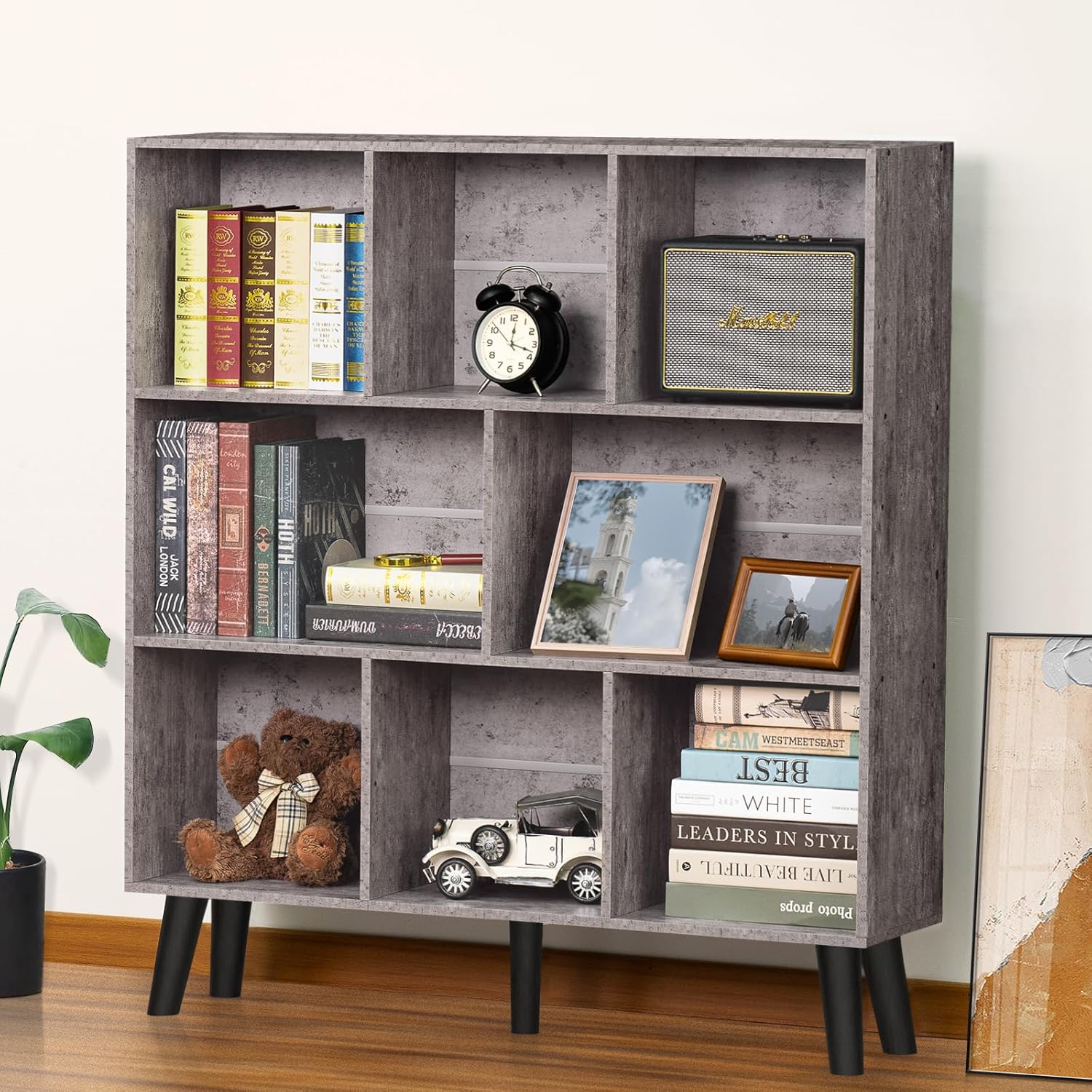 - [Large Storage Space] The newly upgraded unique dirty grey wide bookcase has more spacious storage cubes, and its partition design can meet more of your storage needs. You can fill this creative 3 shelf display cabinet with your beloved books, trophies, decorations, etc., making 8 cube bookcase the most eye-catching presence in your room
