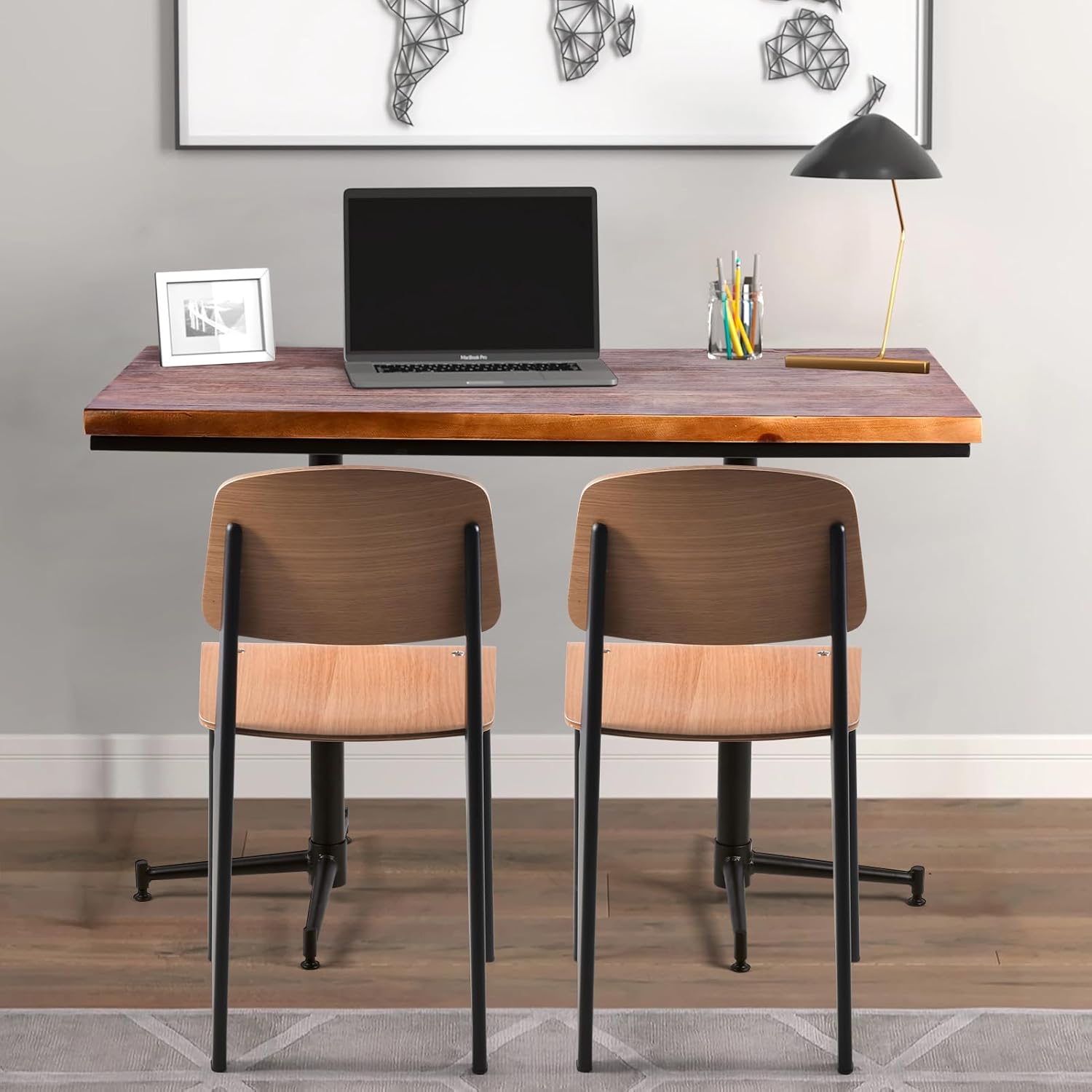 LOKKHAN Dining Chairs, Vintage Wood Metal Home Kitchen Breakfast Cafe Chairs, Backrest Stool, Study Chair, Modern Commercial Conference Restaurant Chairs, Oak Seat-2-Pcs Set