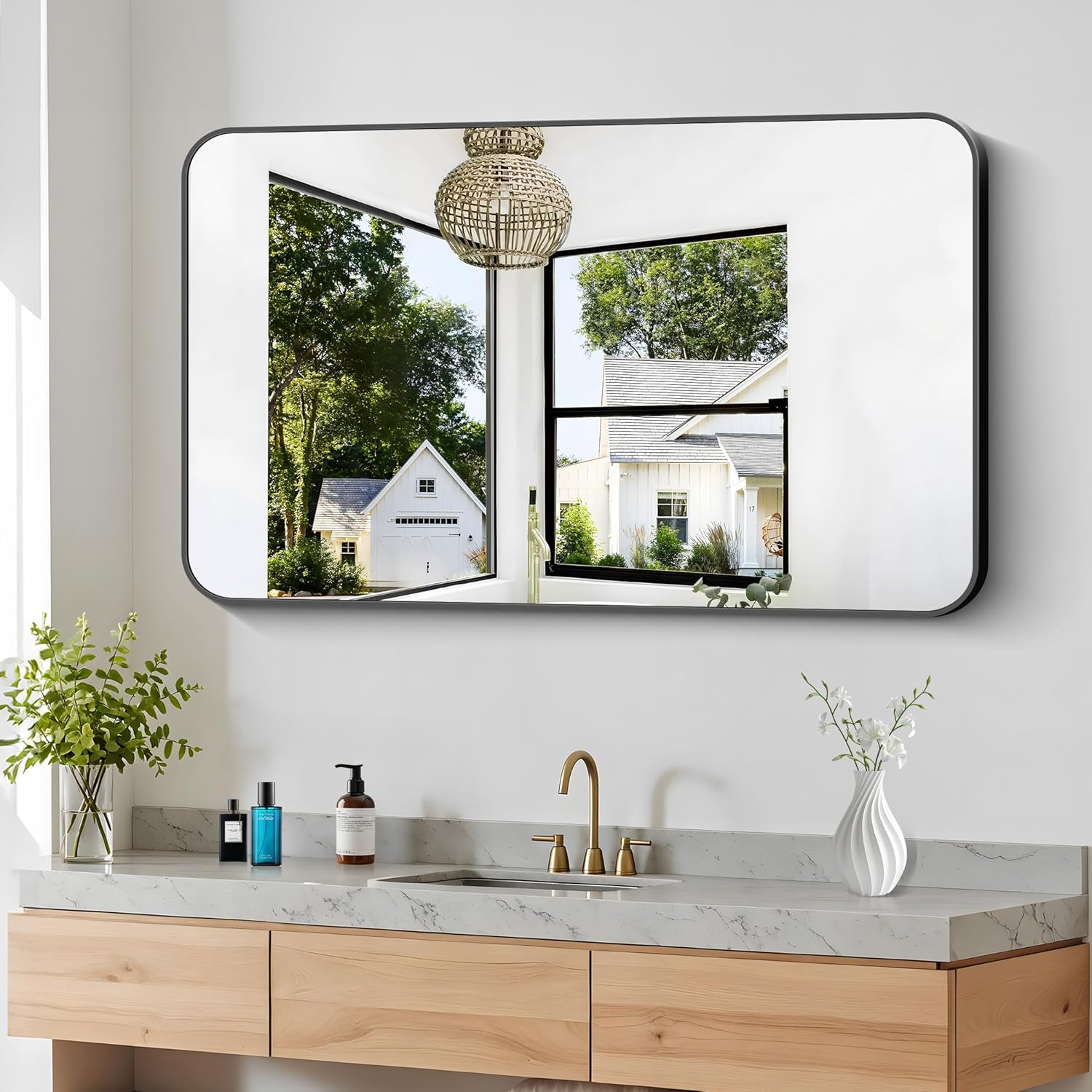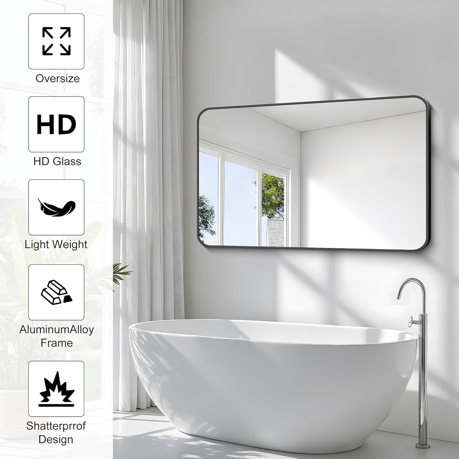 - ROUNDED CORNER DESIGN : The 30x48 inches mirror features an elegant rounded corner design and measures 30" x 48". Its unique shape adds a touch of sophistication and upscale beauty to your home.