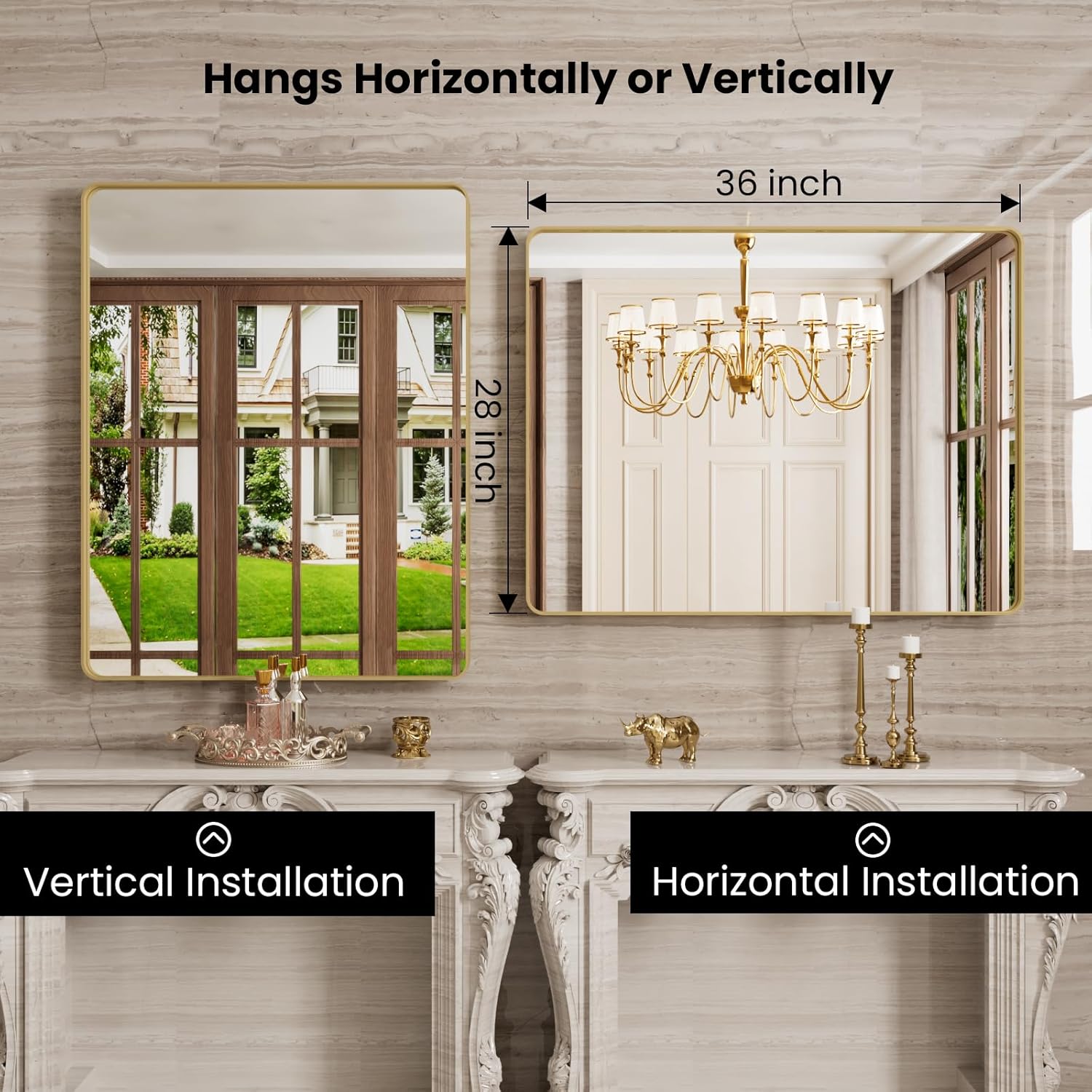 - HD Refection and No Distortion: JISOSO gold bathroom mirror adopts HD float glass technology, it reproduces a true-to-life image, without blurring or distortion, quick defogging, durable, and easy to clean