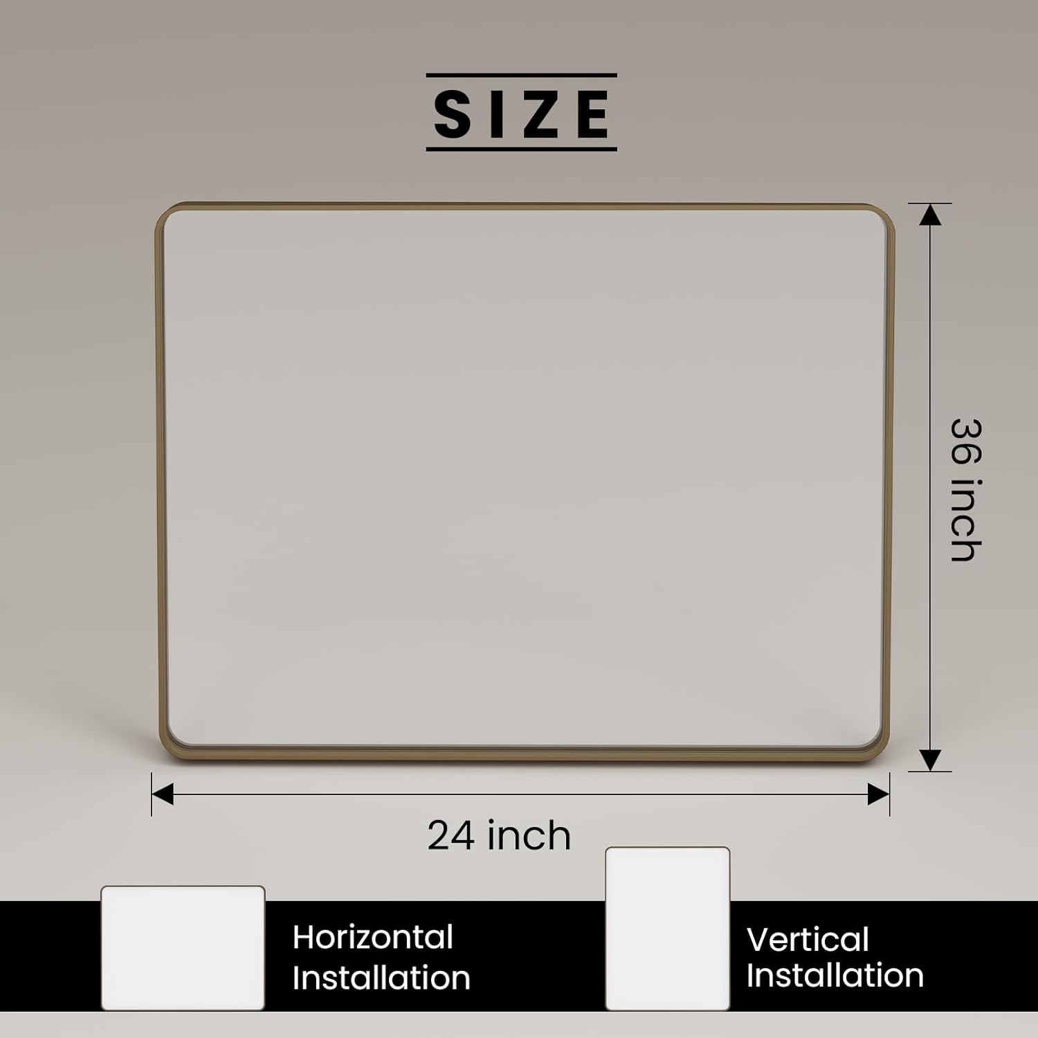 Bronze Bathroom Mirror 24x36 Inch, Brushed Bronze Metal Frame Mirror for Wall, Rounded Rectangle Bathroom Vanity Mirror with Tempered Glass, Anti-Rust, Horizontal/Vertical