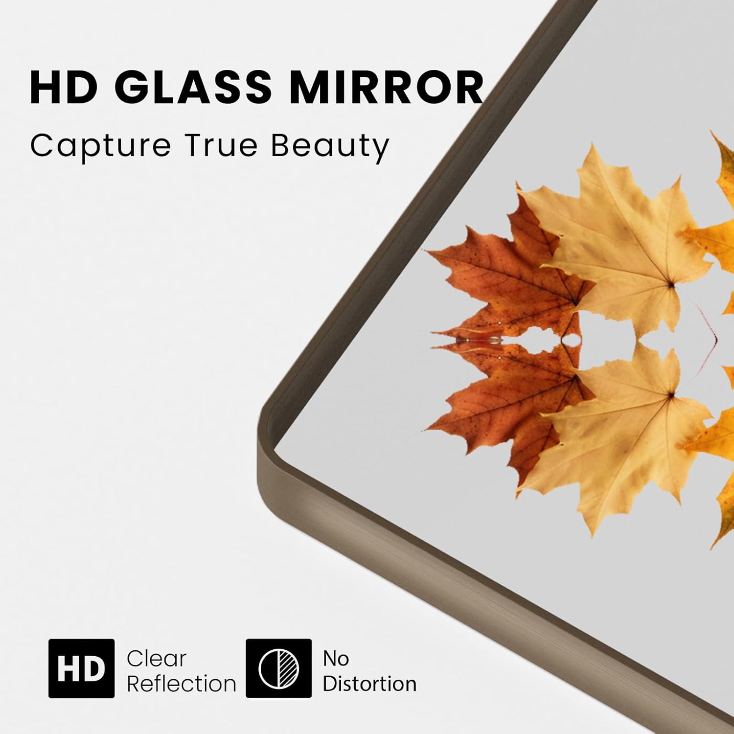 Bronze Bathroom Mirror 40x32 Inch, Brushed Bronze Metal Frame Mirror for Wall, Rounded Rectangle Bathroom Vanity Mirror with Tempered Glass, Anti-Rust, Horizontal/Vertical