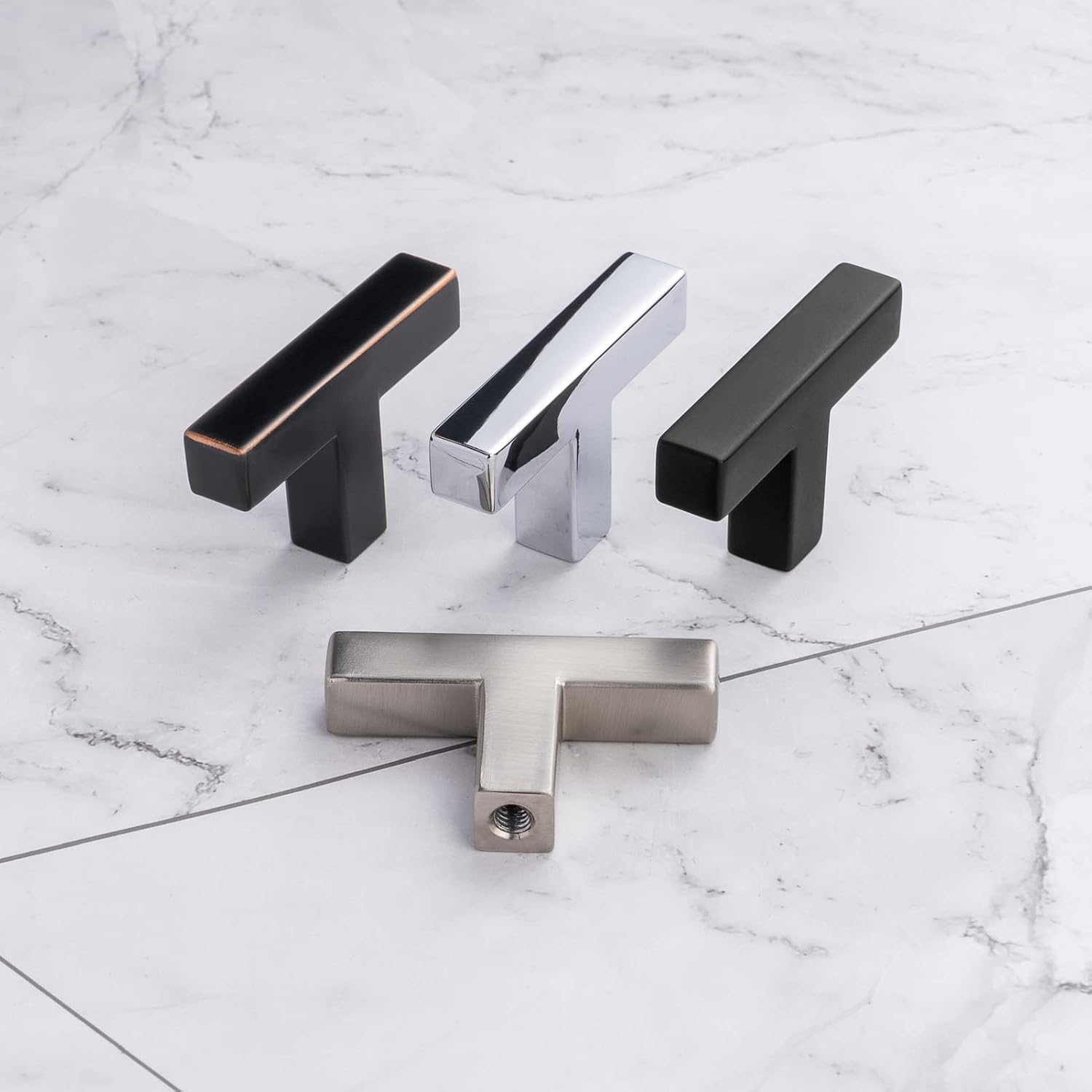 - Modern T bar knob makes a timeless addition to kitchen cabinet, bedroom dresser, bathroom and furniture piece.