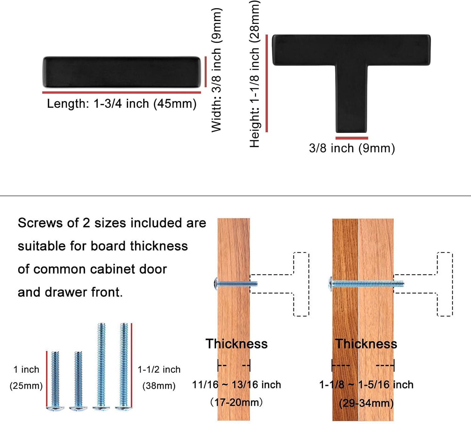 - Free screws of 25mm & 38mm included are suitable for board thickness of common cabinet door and drawer front.