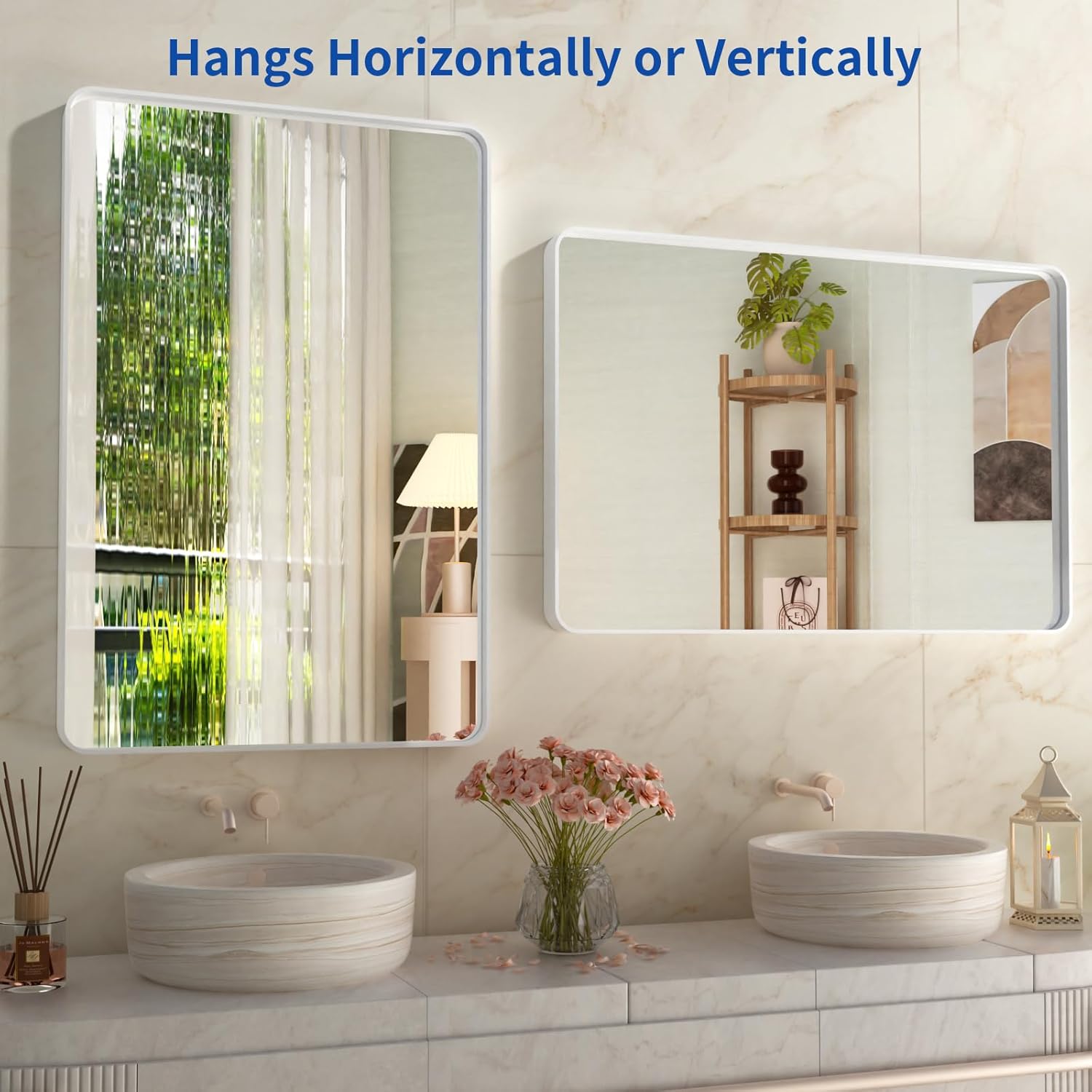 WEER White Bathroom Mirror 24X36 Inch, Rounded Rectangle White Metal Frame Mirror, Matte White Bathroom Vanity Mirror with Tempered Glass, Anti-Rust, Hangs Horizontally or Vertically