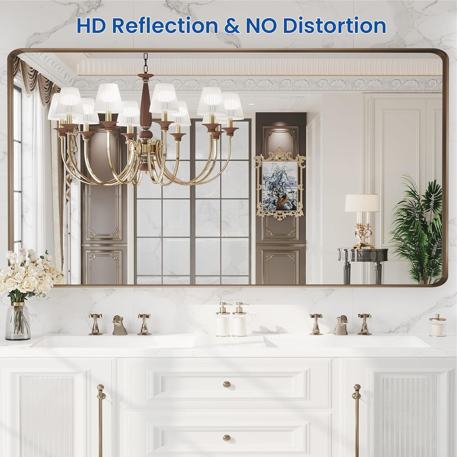 - 【Clear Reflection & NO Distortion】: The bronze framed bathroom mirrors is designed with HD float glass to ensure 1:1 restoration of real image, delivers a clear reflection with no distortion;