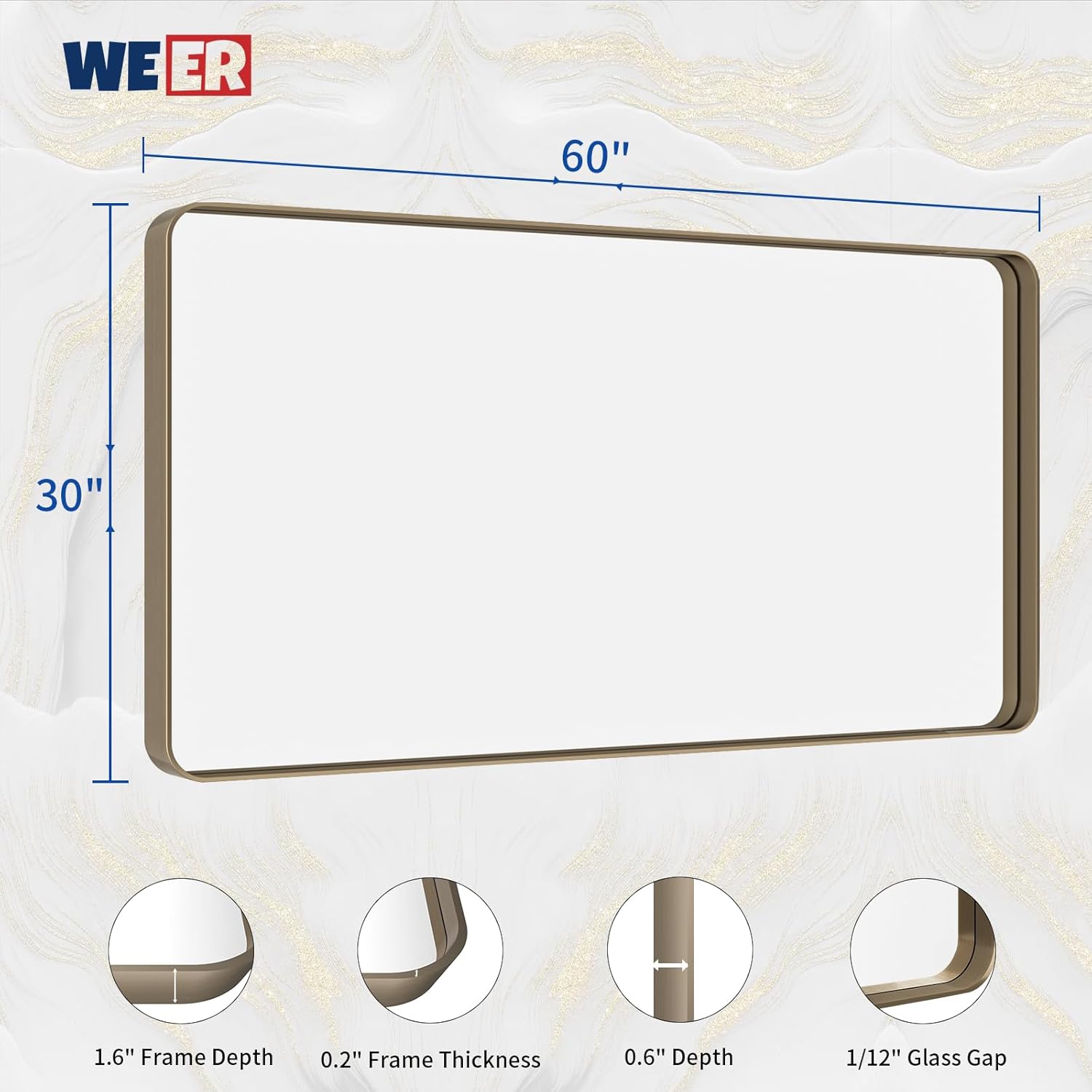 WEER 60x30 Inch Bronze Bathroom Mirror for Vanity, Brushed Bronze Metal Frame Rounded Rectangle Mirror with Tempered Glass, Anti-Rust (Horizontal/Vertical)
