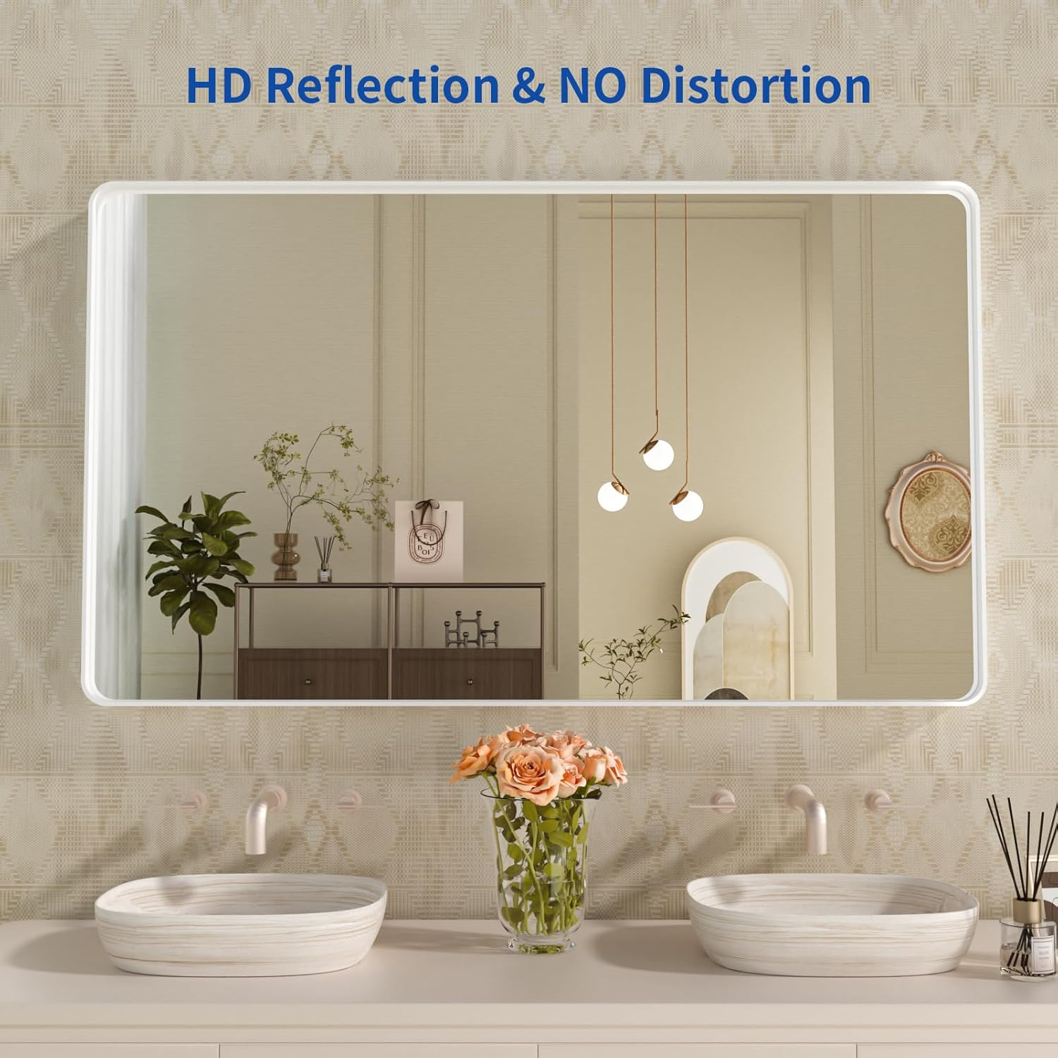 - 【Clear Reflection & NO Distortion】: The white framed bathroom mirrors is designed with HD float glass to ensure 1:1 restoration of real image, delivers a clear reflection with no distortion;