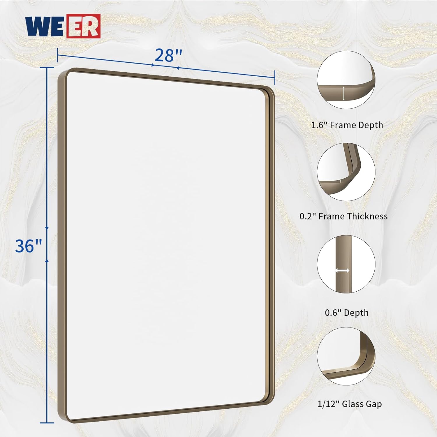 - 【Durable Bronze Frame Mirror】: WEER bronze bathroom vanity mirror is made of premium brushed alumium alloy frame, which is anti-rust and non-deformed. Practical rectangle rounded corner mirror with simple classic clean line features the modern and industry style;