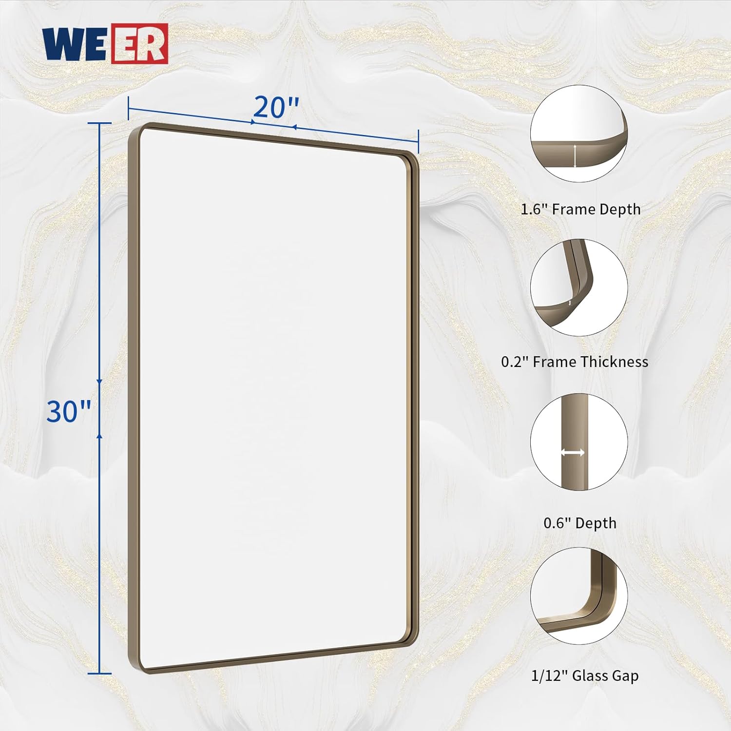 - 【Shatterproof Tempered Glass】: All WEER bronze wall mirror bathroom is built with 4MM tempered glass which is shatter-proof, burst-proof and more safer to use. The shatterproof film is the important layer that will not splash into pieces when it's broken;