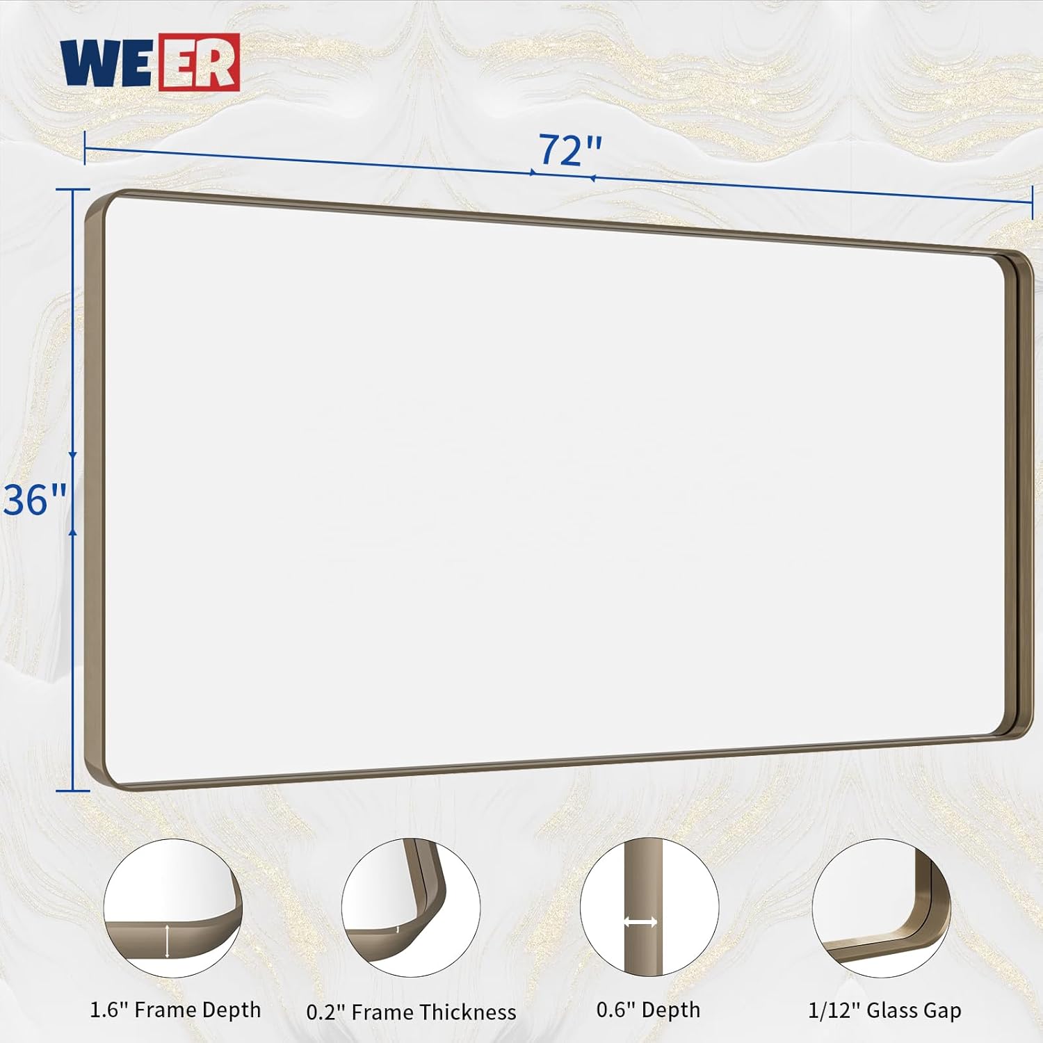 WEER 72x36 Inch Bronze Bathroom Mirror for Vanity, Brushed Bronze Metal Frame Mirror for Wall, Rounded Rectangle Bronze Frame Mirror with Tempered Glass, Anti-Rust (Horizontal/Vertical)