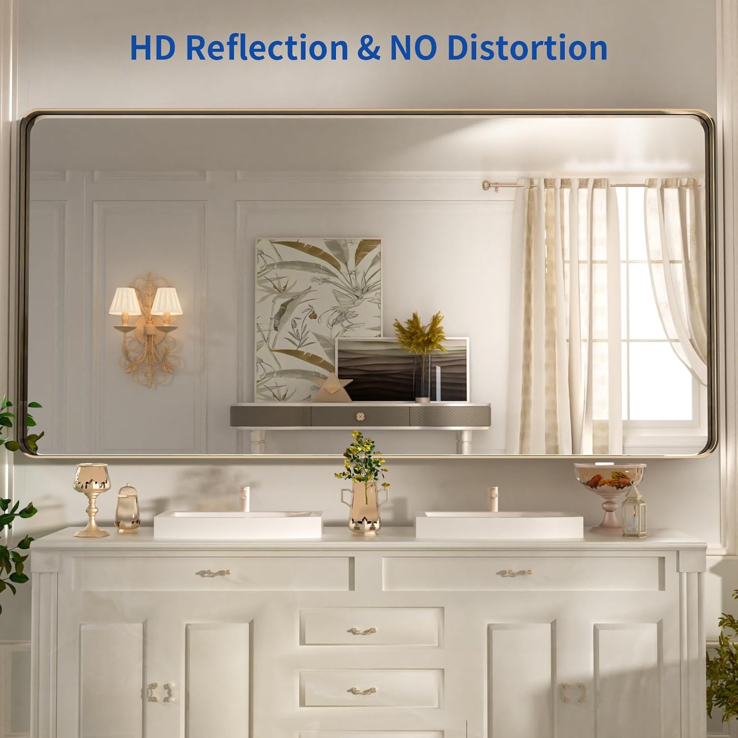 - 【Clear Reflection & NO Distortion】: The bronze framed bathroom mirrors is designed with HD float glass to ensure 1:1 restoration of real image, delivers a clear reflection with no distortion;