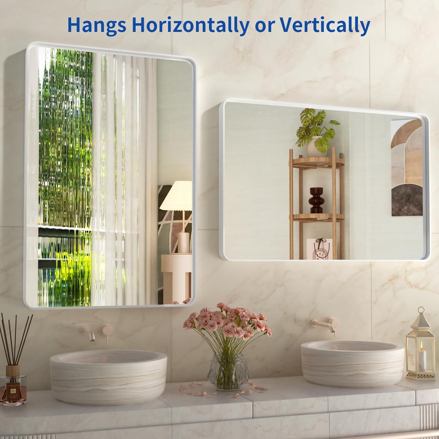 - 【Clear Reflection & NO Distortion】: The white framed bathroom mirrors is designed with HD float glass to ensure 1:1 restoration of real image, delivers a clear reflection with no distortion;