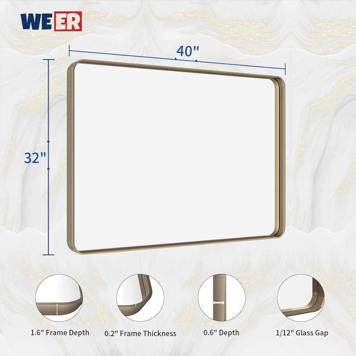 - 【Shatterproof Tempered Glass】: All WEER bronze wall mirror bathroom is built with 4MM tempered glass which is shatter-proof, burst-proof and more safer to use. The shatterproof film is the important layer that will not splash into pieces when it's broken;