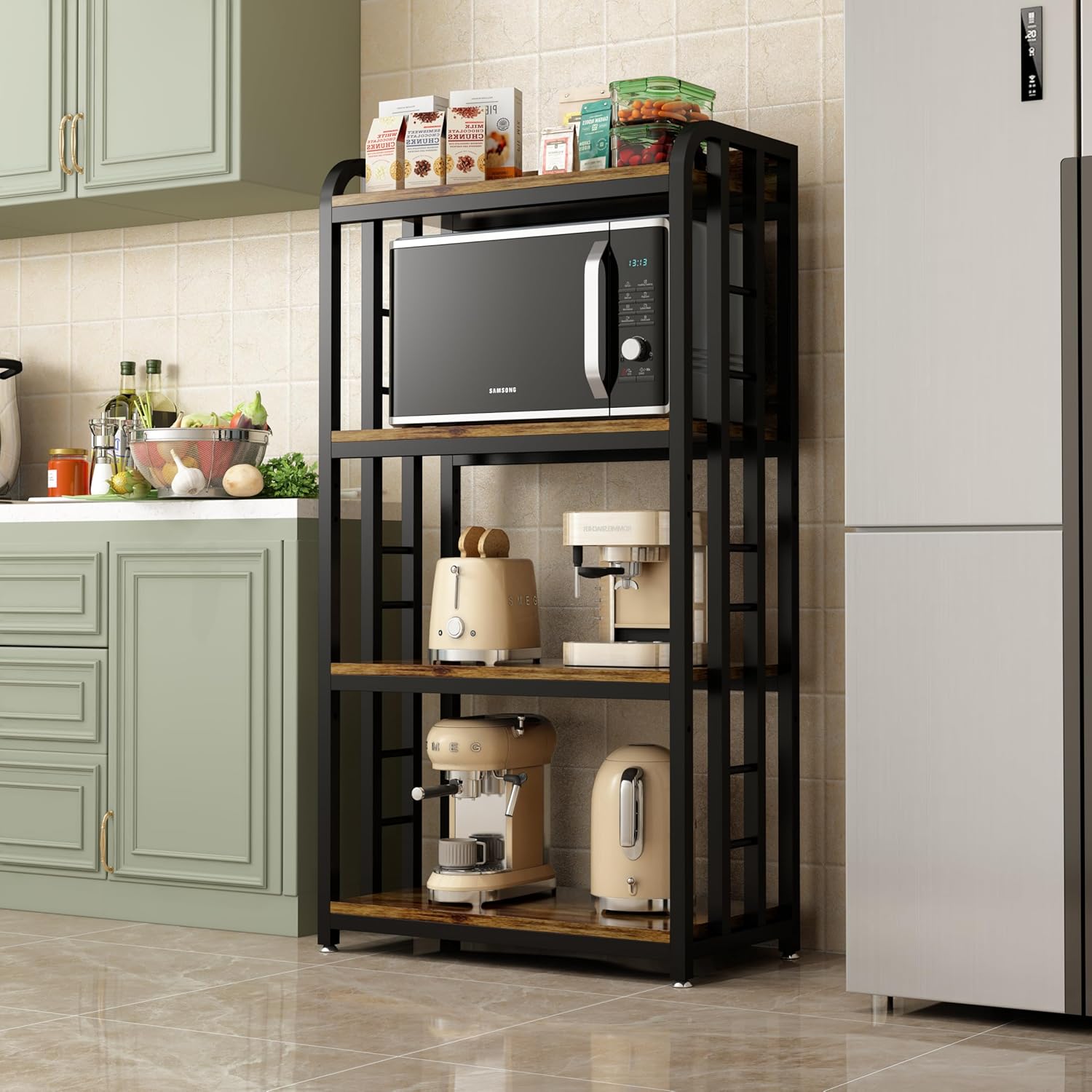 - 4-Tier Versatile Storage & Organization:This heavy-duty baker’s rack offers 4 adjustable shelves, ideal for organizing microwaves, kitchen appliances, pantry items, tools, or office supplies. Perfect for kitchens, garages, living rooms, or workspaces, it maximizes vertical storage while keeping essentials accessible.