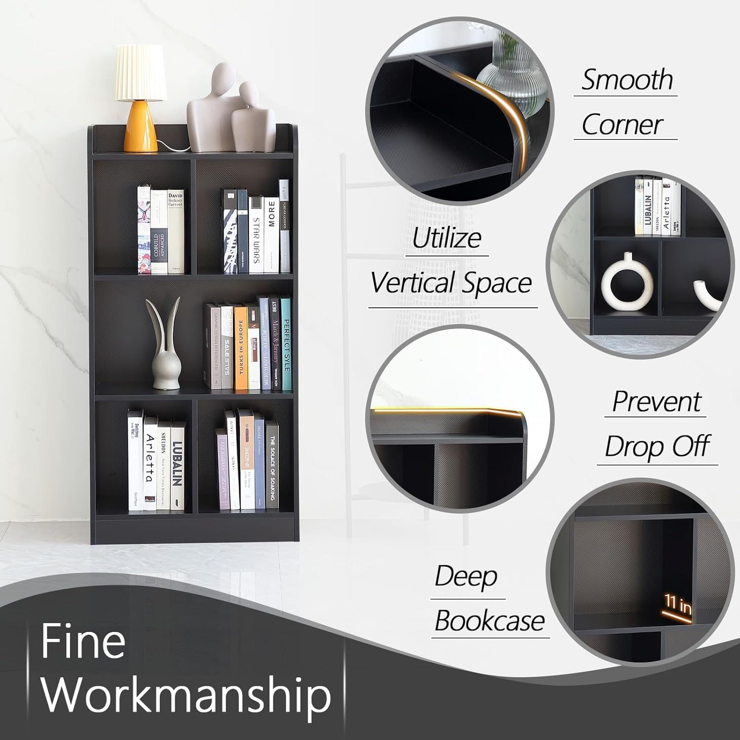 Book Shelf with Back Panel Stability 5 Cube Bookcase Multifunctional Cube Storage Organizer Shelf for Bedroom Living Room Office Closet School in Black with 23.62''W